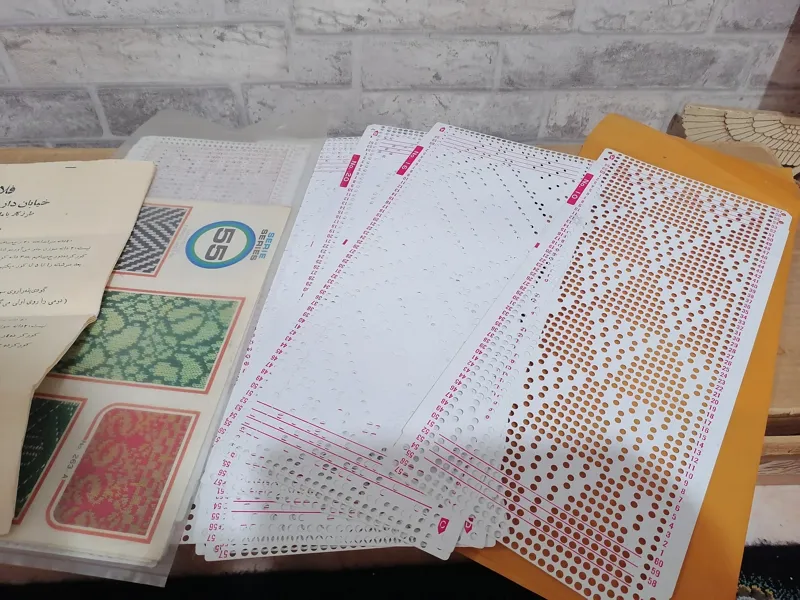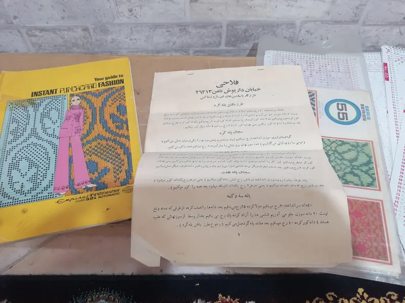 به همراه دفترچه و تعدادی از الگوهای بافت