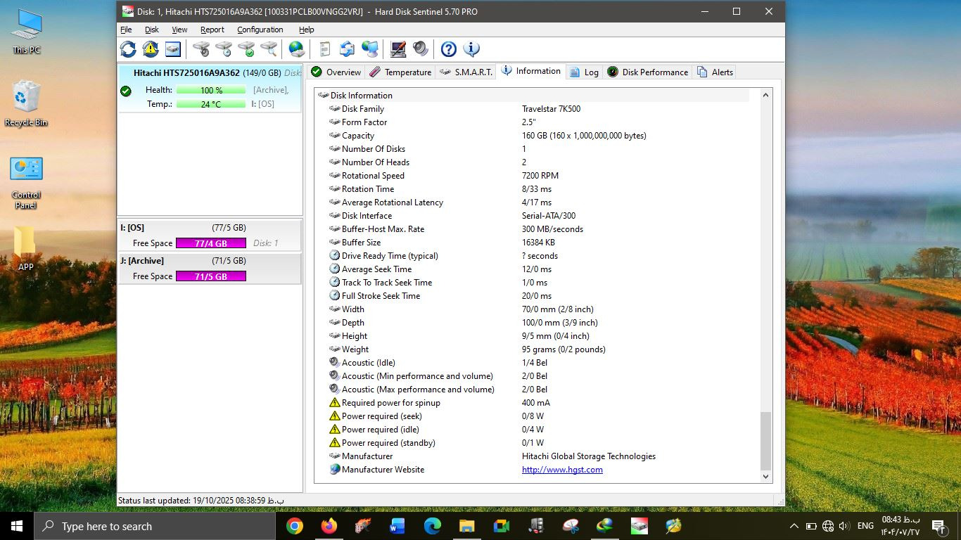 هارد 160گیگHitachi -سلامت و کارایی٪100