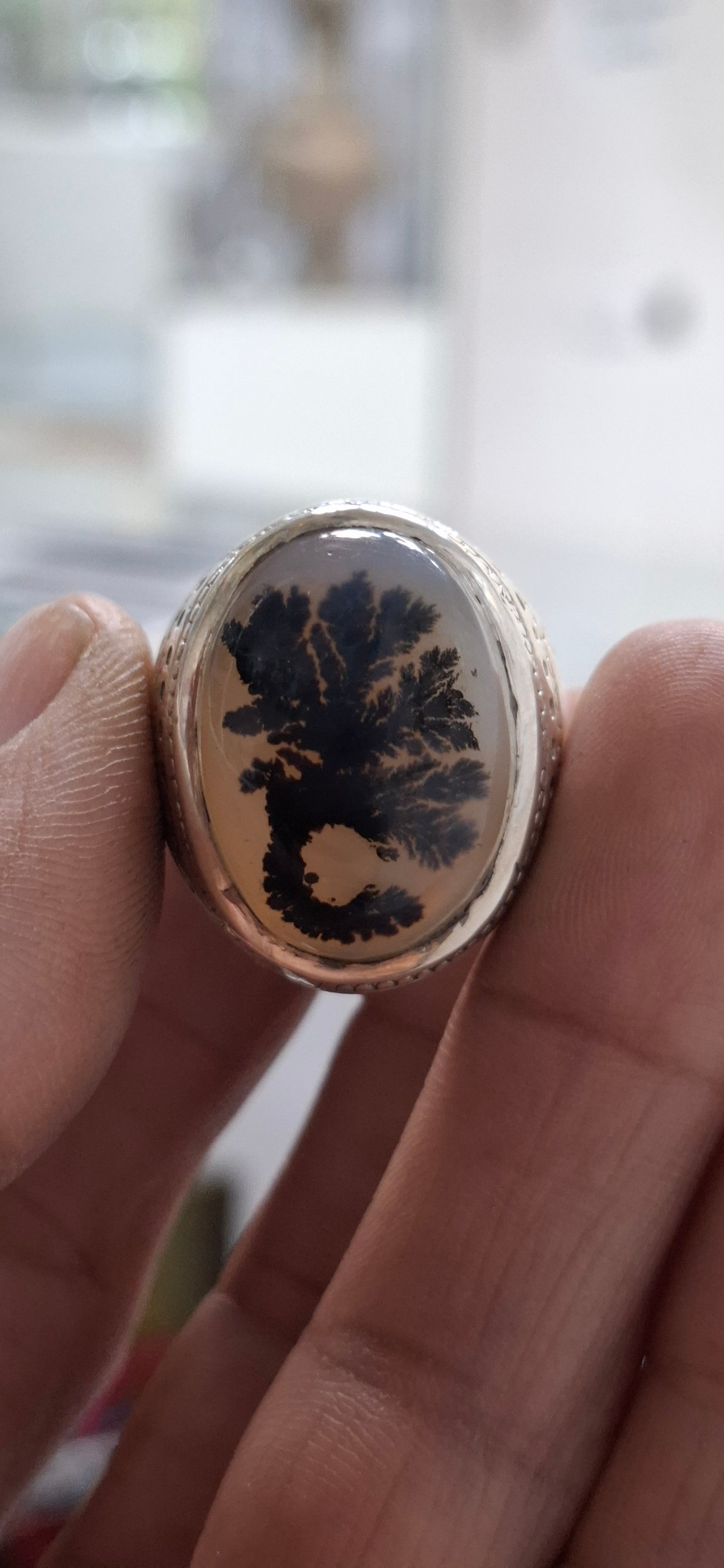 انگشتر نقره مردانه بانگین شجر طبیعی قاین تکدرخت واضح کلکسیونی