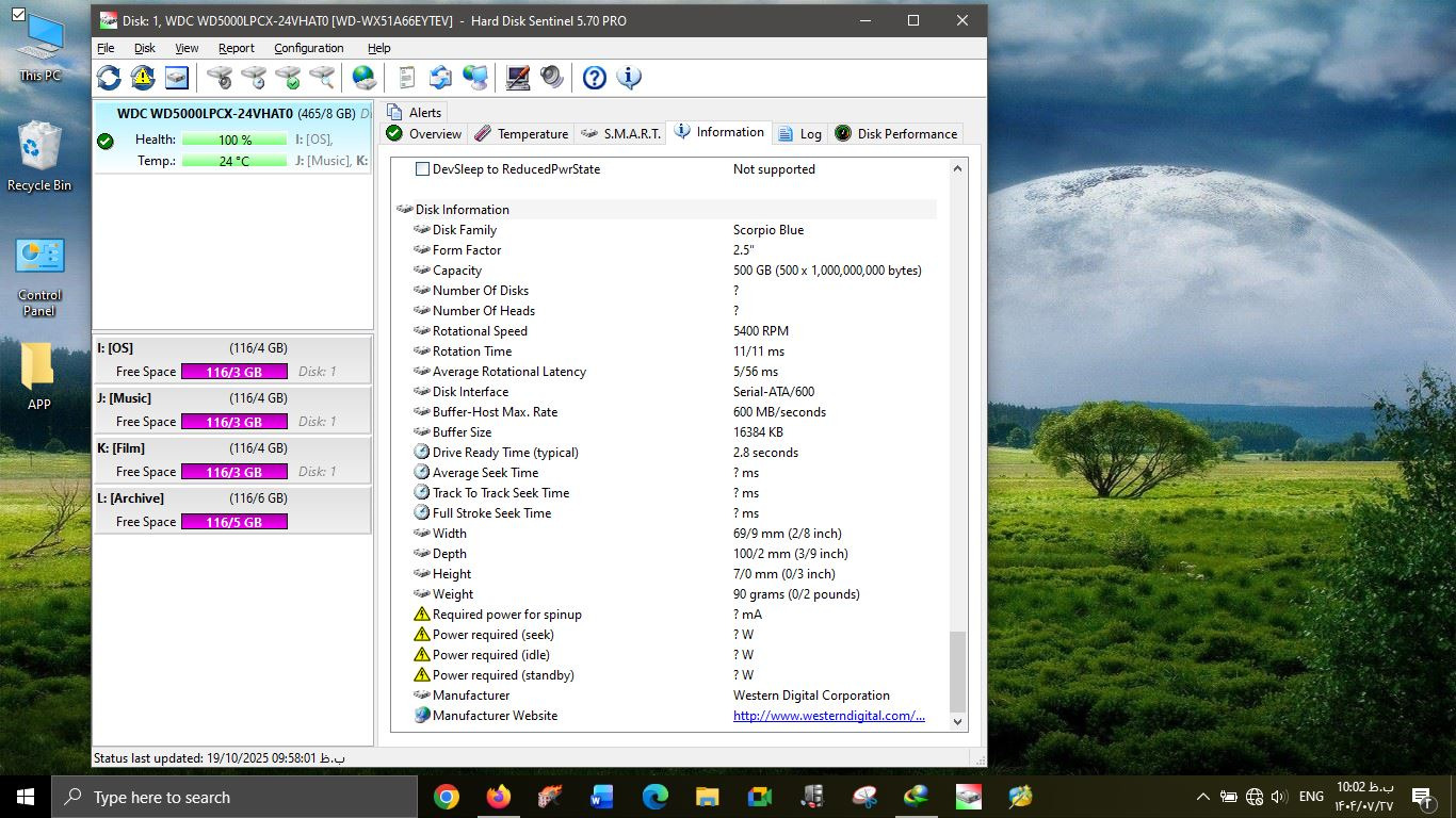 هارد500گیگWD- سلامت و کارایی٪100-سرعت6Gb/s