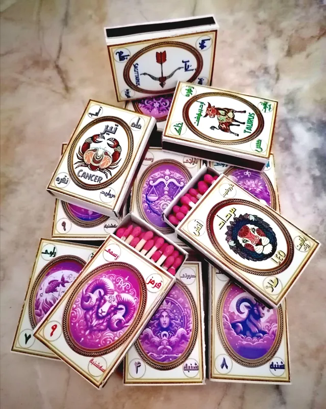 بر روی این کبریت نماد تولد هر ماه، شخصیت، رنگ، سنگ، فلز، عدد، روزو... چاپ شده