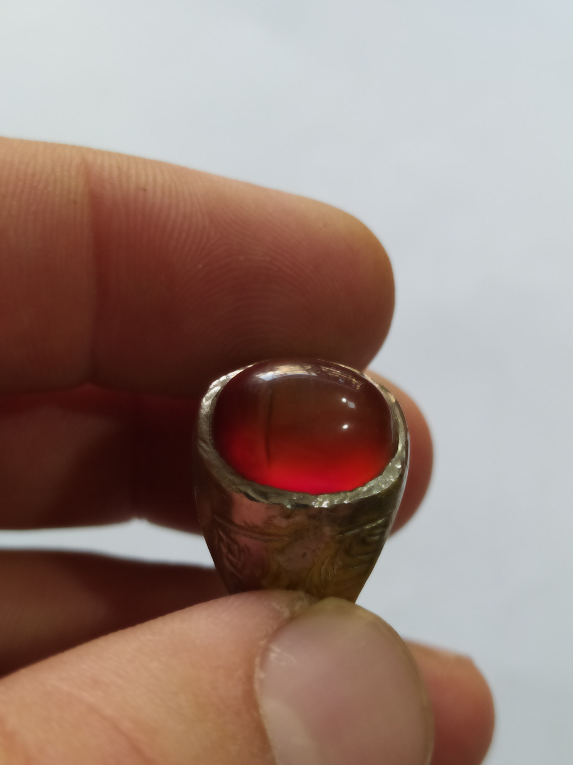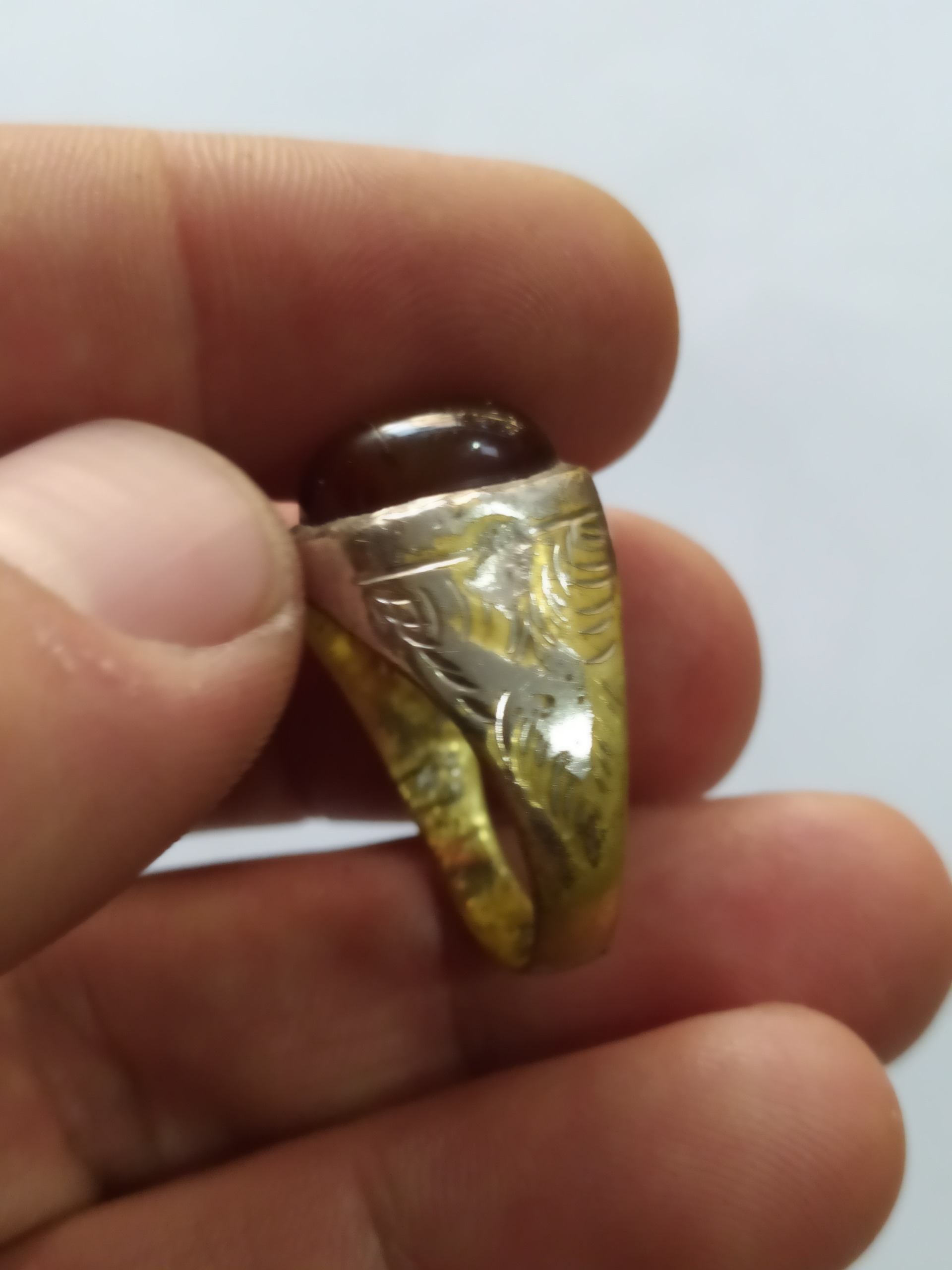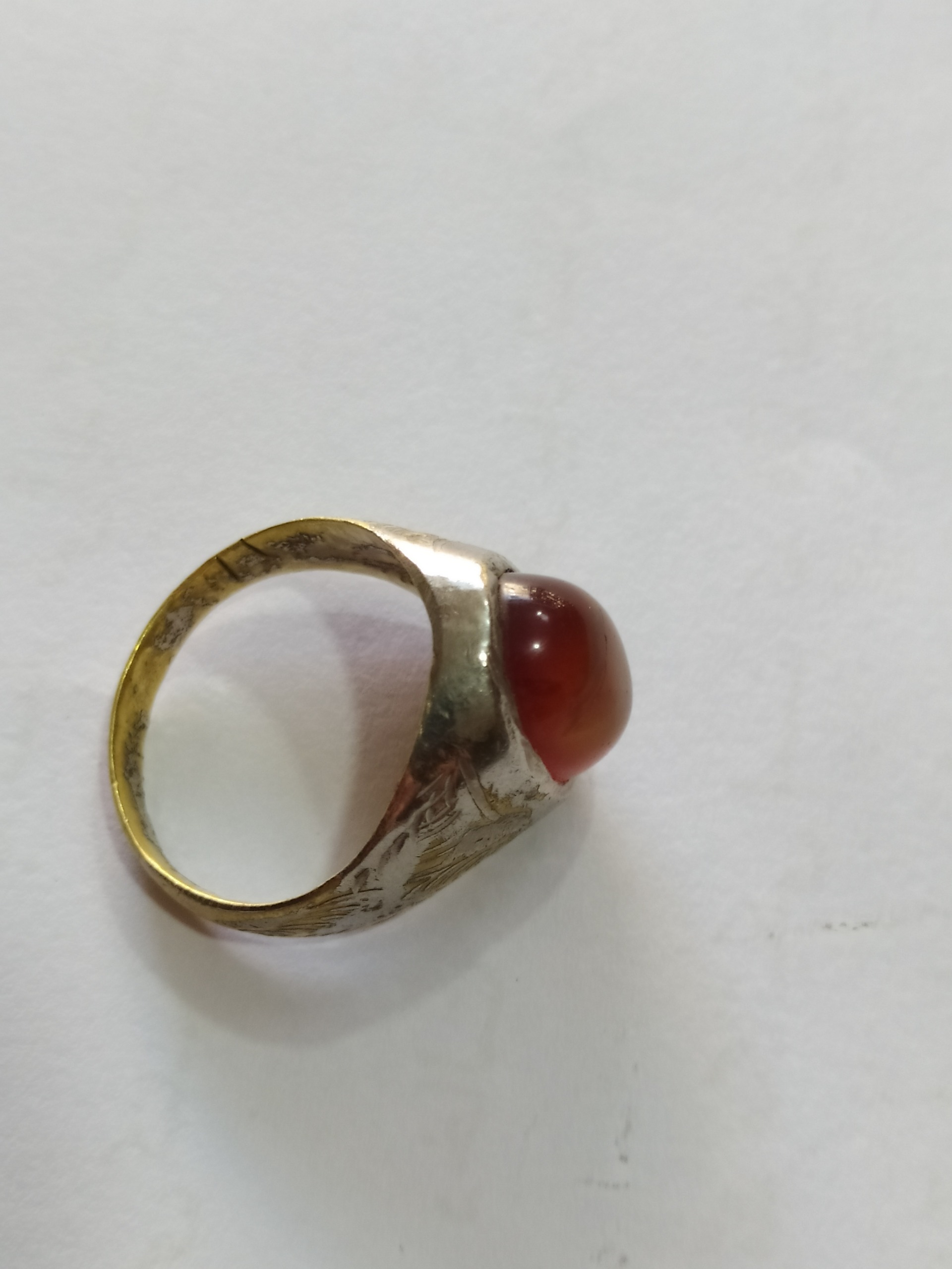 انگشتر قدیمی عقیق معدنی آبدار رکاب برنجی