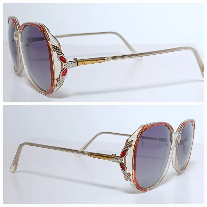 در واقع این عینک نو هست و استفاده نشده، و روی آن لنز آفتابی نصب شده، ساخت ایتالیا،متعلق به حدود 40 سال قبل،عینک شکیل و زیبائی است.ساخته شده از استات و فلز. اندازه های عینک به شرح زیر است: