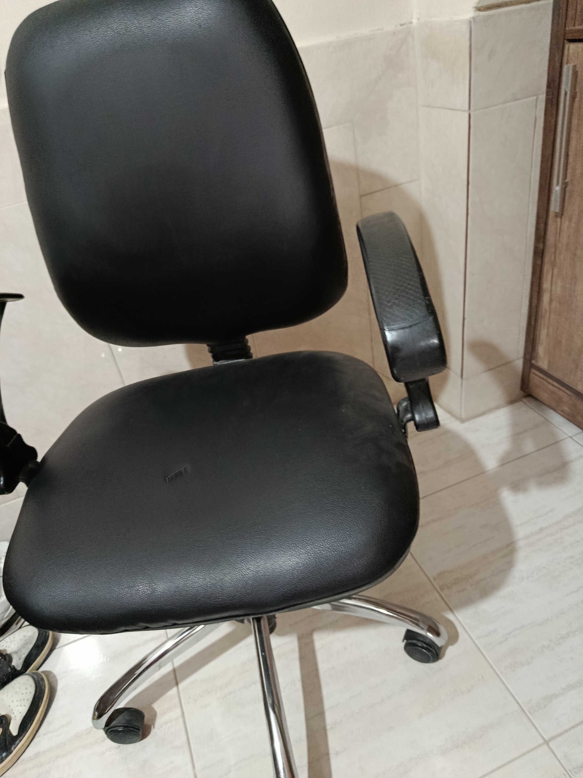 صندلی کامپیوتر اداری. مشکی سالمه فقط در حد ی فندق روکش روش کمی پارگی داره. که لازم بود عکس واضح تر میفرستم