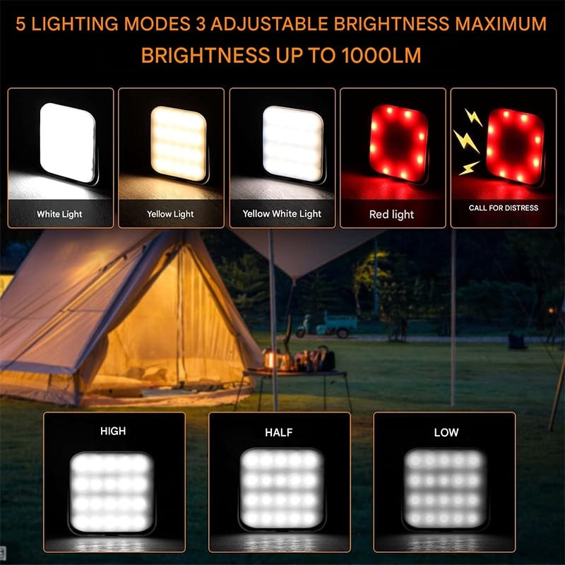 به عنوان لامپ اظطراری خودرو چراغ چادر قابلیت آویزان کردن در طبیعت بر روی شاخه ها، چادر ها، آلاچیق ها و غیره کمپینگ