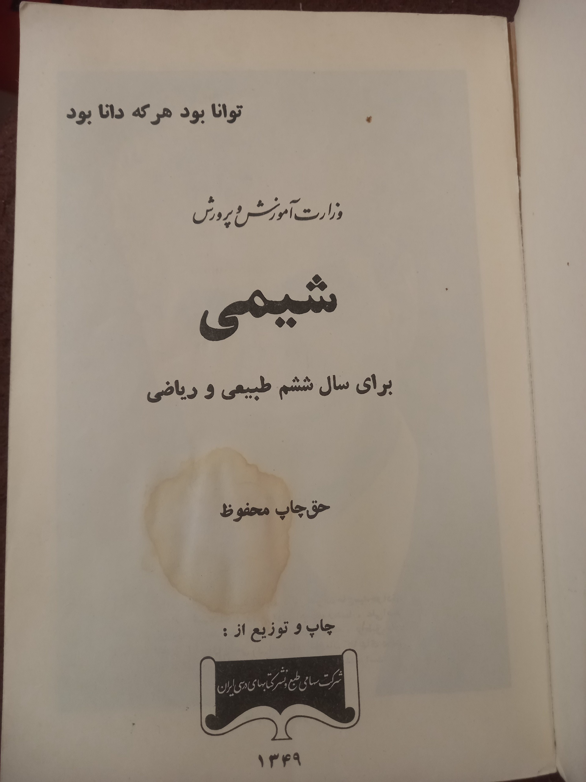 کتاب  شیمی  برای  سال  ششم  طبیعی  و  ریاضی!