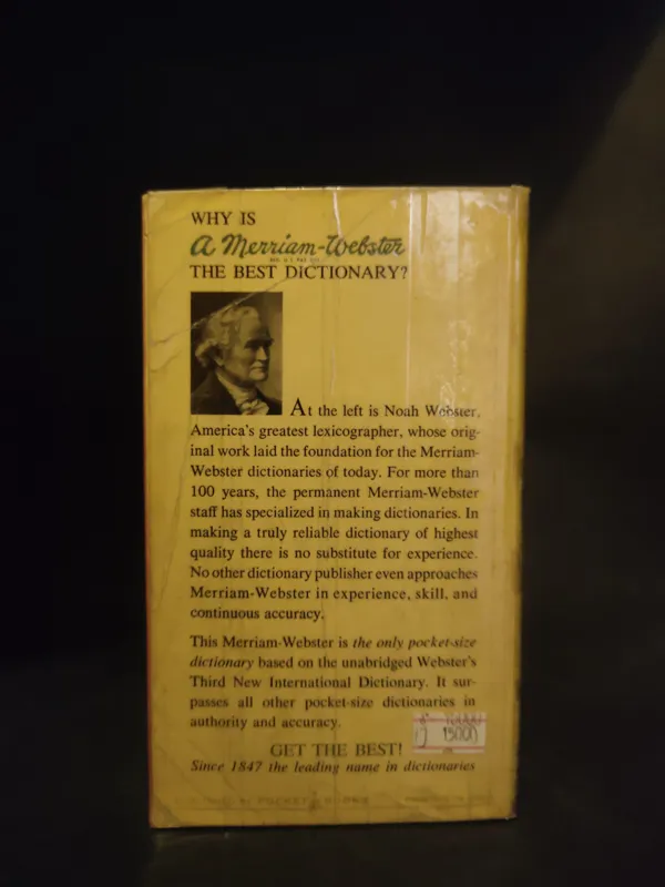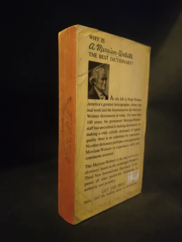 This Merriam-Webster is the only pocket-size dictionary based on the unabridged Websters Third New International Dictionary. It sur passes all other pocket-size dictionaries in authority and accuracy.