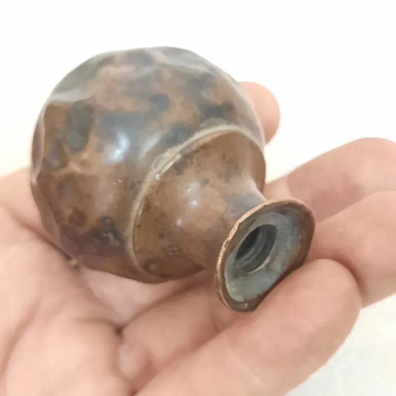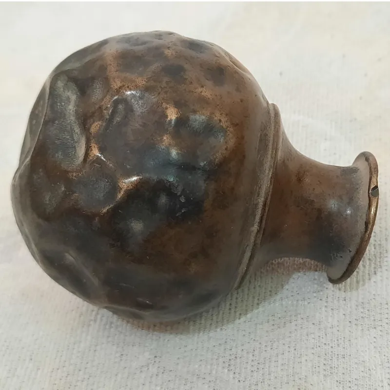 عزیزان این باروت دان کوچک از جنس فلز برنج هست، حدود 6 سانت ارتفاع و حدودا 5 سانتی متر قطر میانه ش هست درب نداره ولی داخلش رزوه دار هست که معلومه دربش پیچی بوده و حدود 40 گرم وزن داره . قدمتش بدون شک قاجاری هست