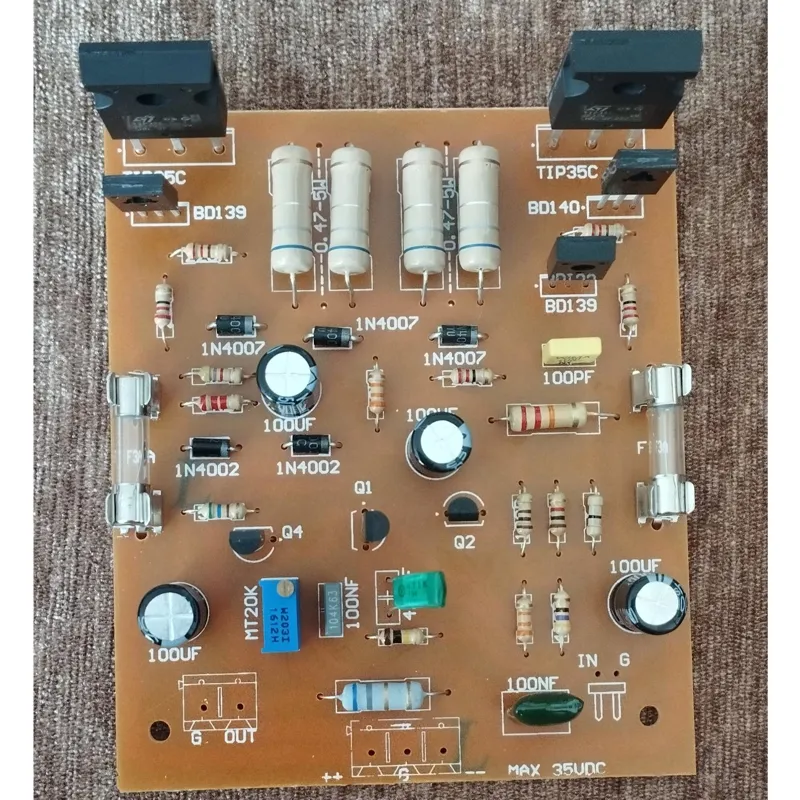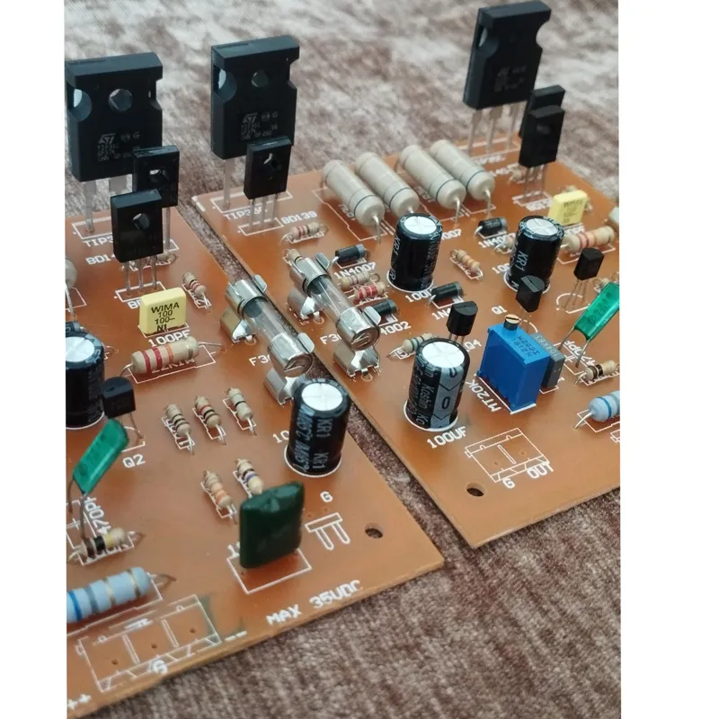 برد آمپلی فایر 250 وات مونو کلاس AB با ترانزیستور های اورجینال و قطعات درجه 1 کیفیت صدا کریستالی و بدون نویز قابل استفاده با بلندگوهای 2 اهمی 4 اهمی 8 اهمی راه اندازی با تغذیه دوبل از 12 ولت تا 24 ولت بدون نیاز به پری آمپلی فایر اتصال مستقیم انواع فلش پلیر و پخش کننده بلوتوثی _ بدنه ترانزیستور های قدرت حتماً باید با استفاده از عایق و خمیر سیلیکون به هیت سینک مناسب پیچ شود .