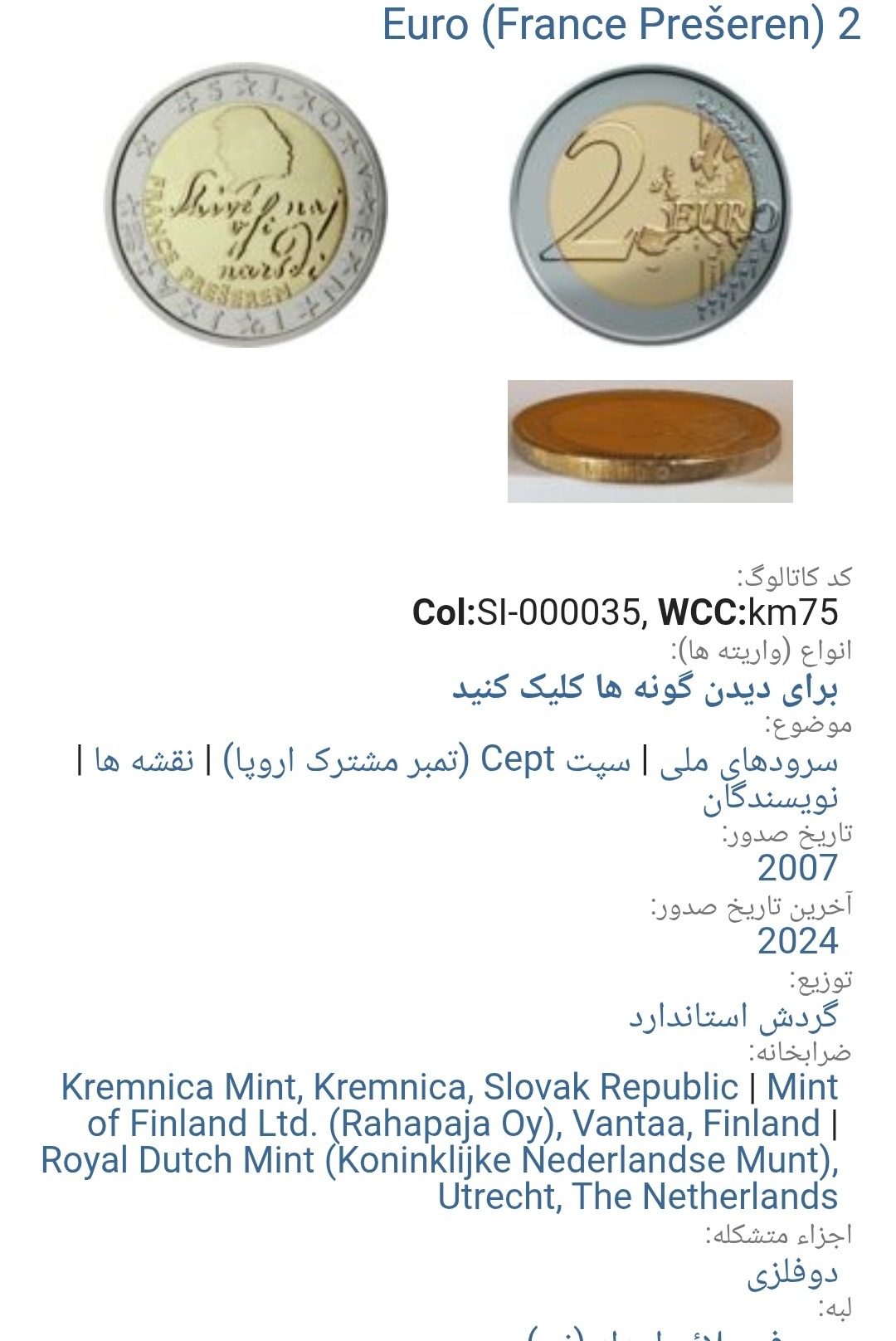 سکه 2یورو یادبودی نایاب اسلوونی 2007(501))