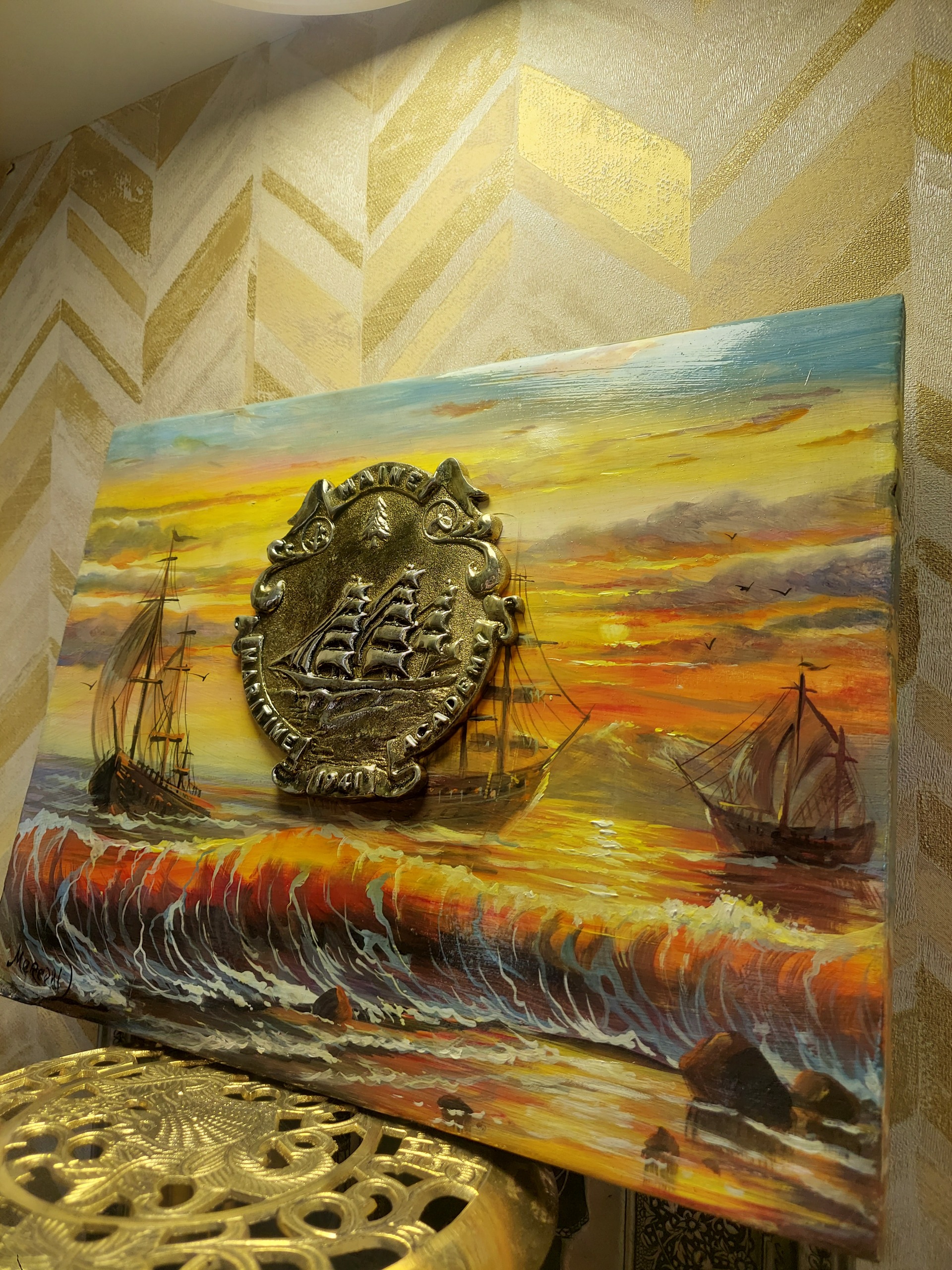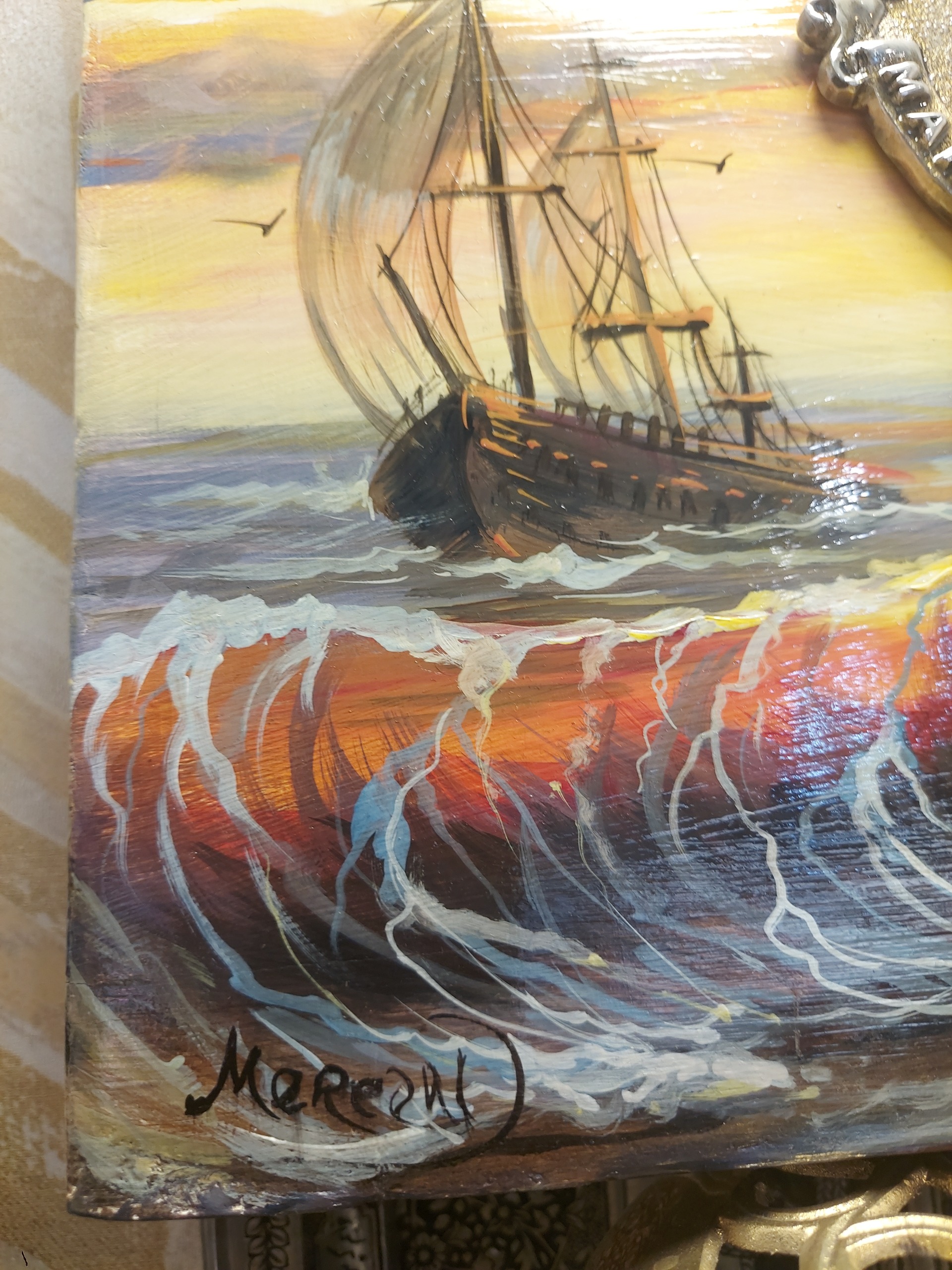 روی شاسی چوبی نقاشی شده کاملا سالم یک پلی استر هم ما زدیم برای حفظ نقاشی