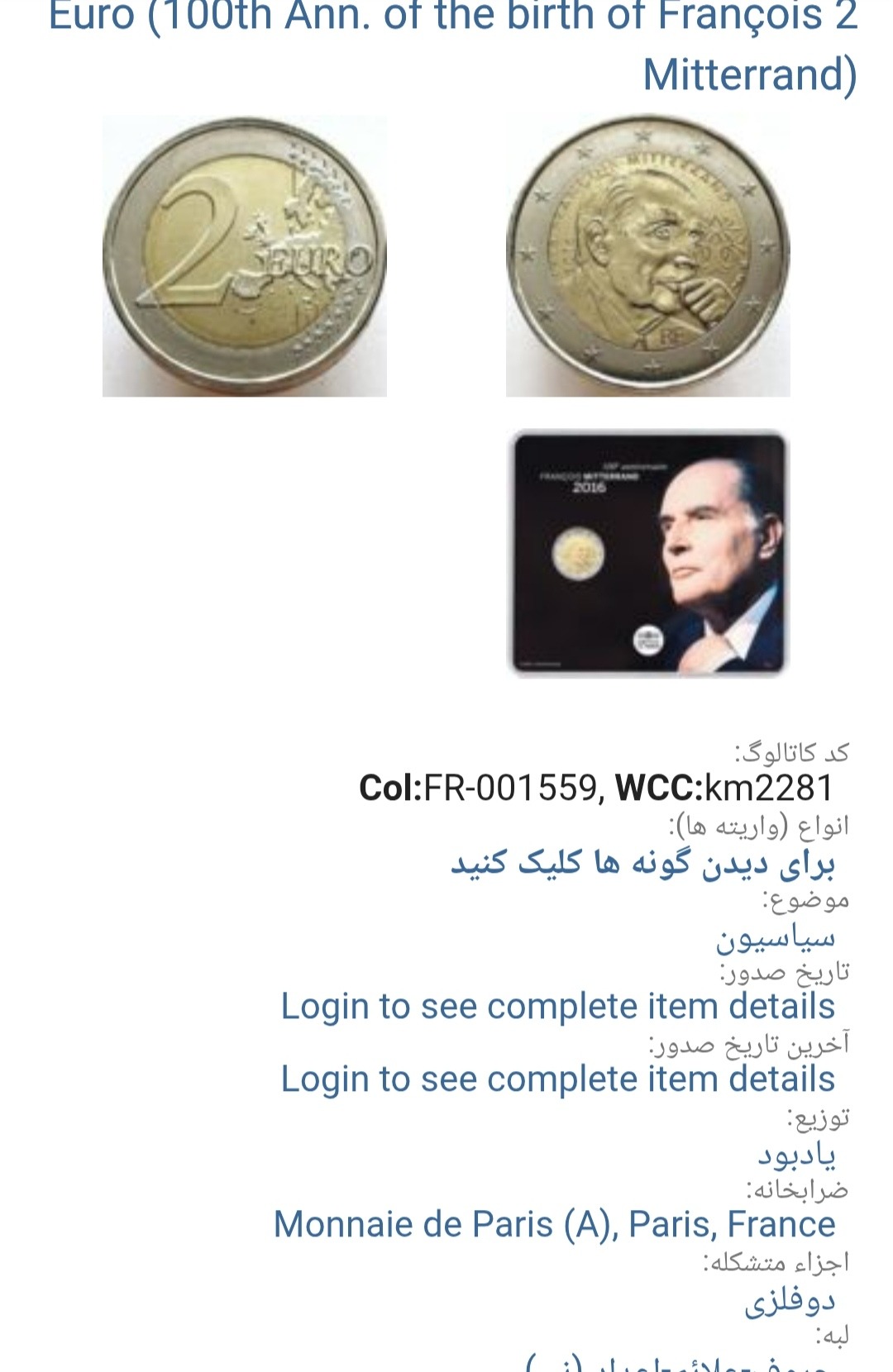 سکه 2یورو یادبودی نایاب فرانسه2016 (501))