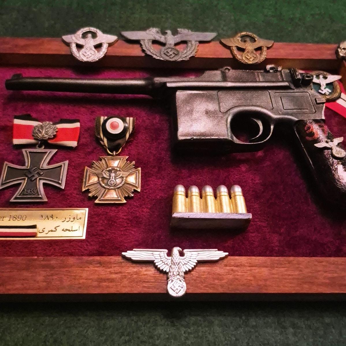 مجموعه مدال و تپانچه دکوری ماوزر C96 آلمان نازی