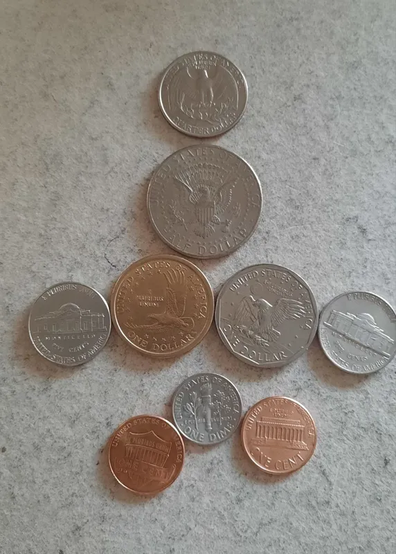 1 دلار دختر سرخ پوست و 1 دلار خانم مرگان ،نیم دلار کندی، کوارتر، 2مدل نیکل یا 5 سنت،دایم یا ده سنت و 2 مدل 1 سنت،