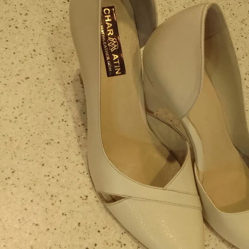 کفش مجلسی شیری سفید کرم چرم اصل قد پاشنه 9 سانت سایز 38 زنانه دخترانه