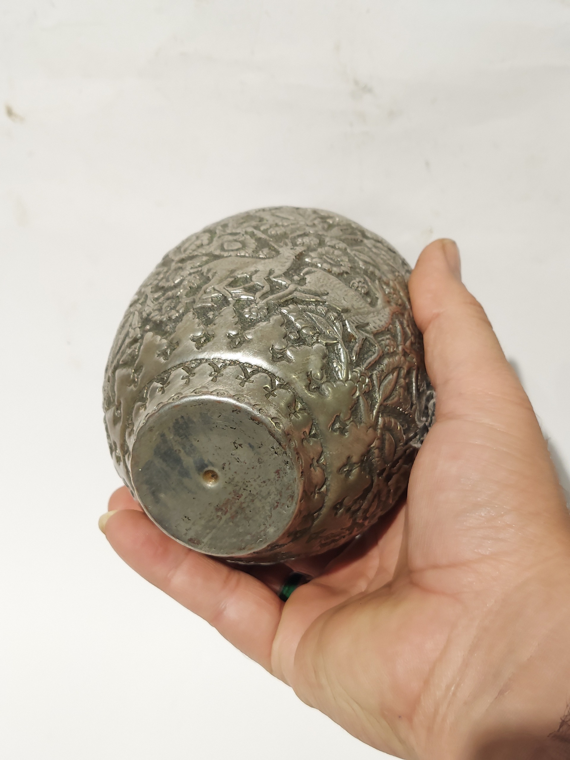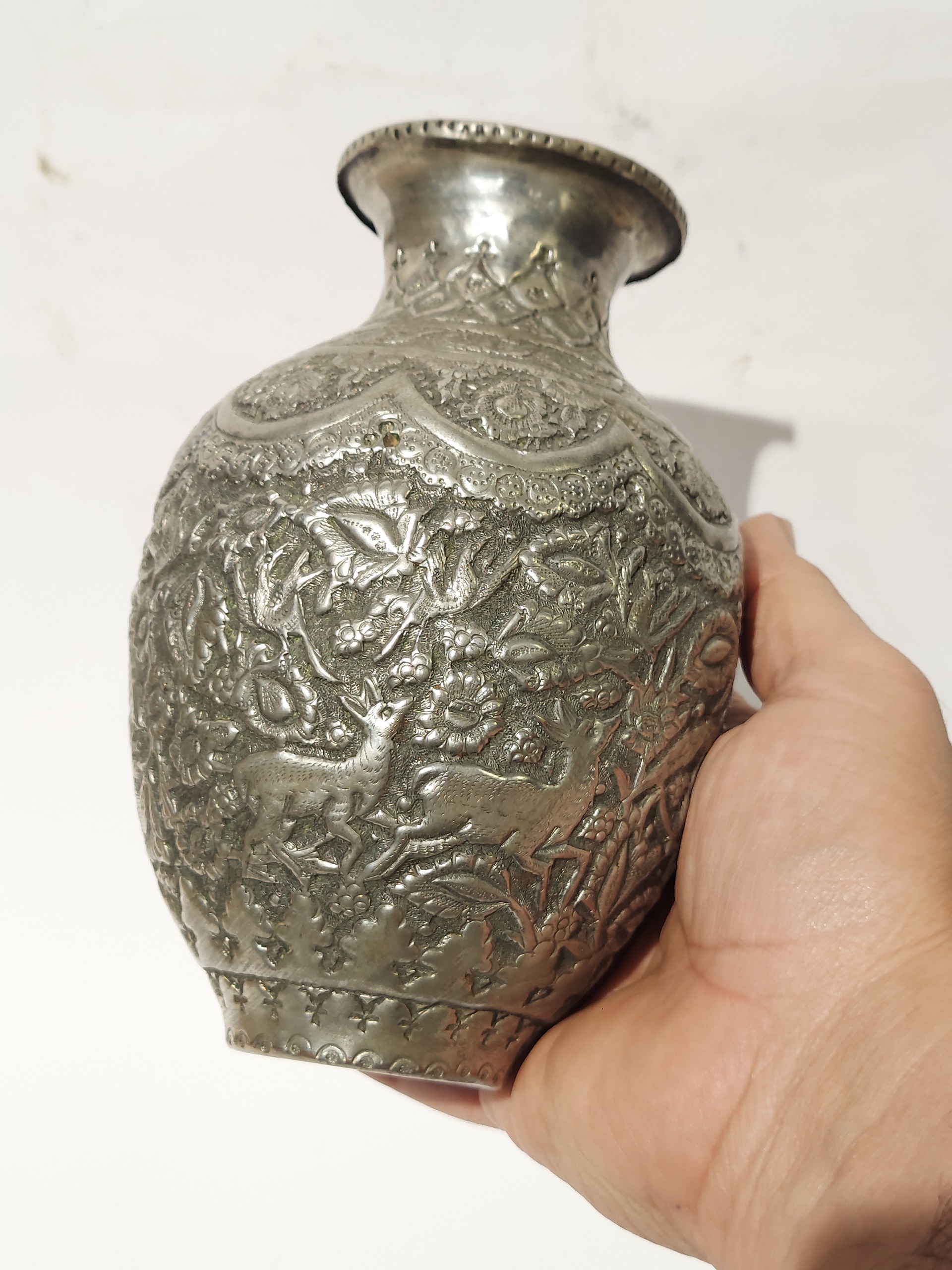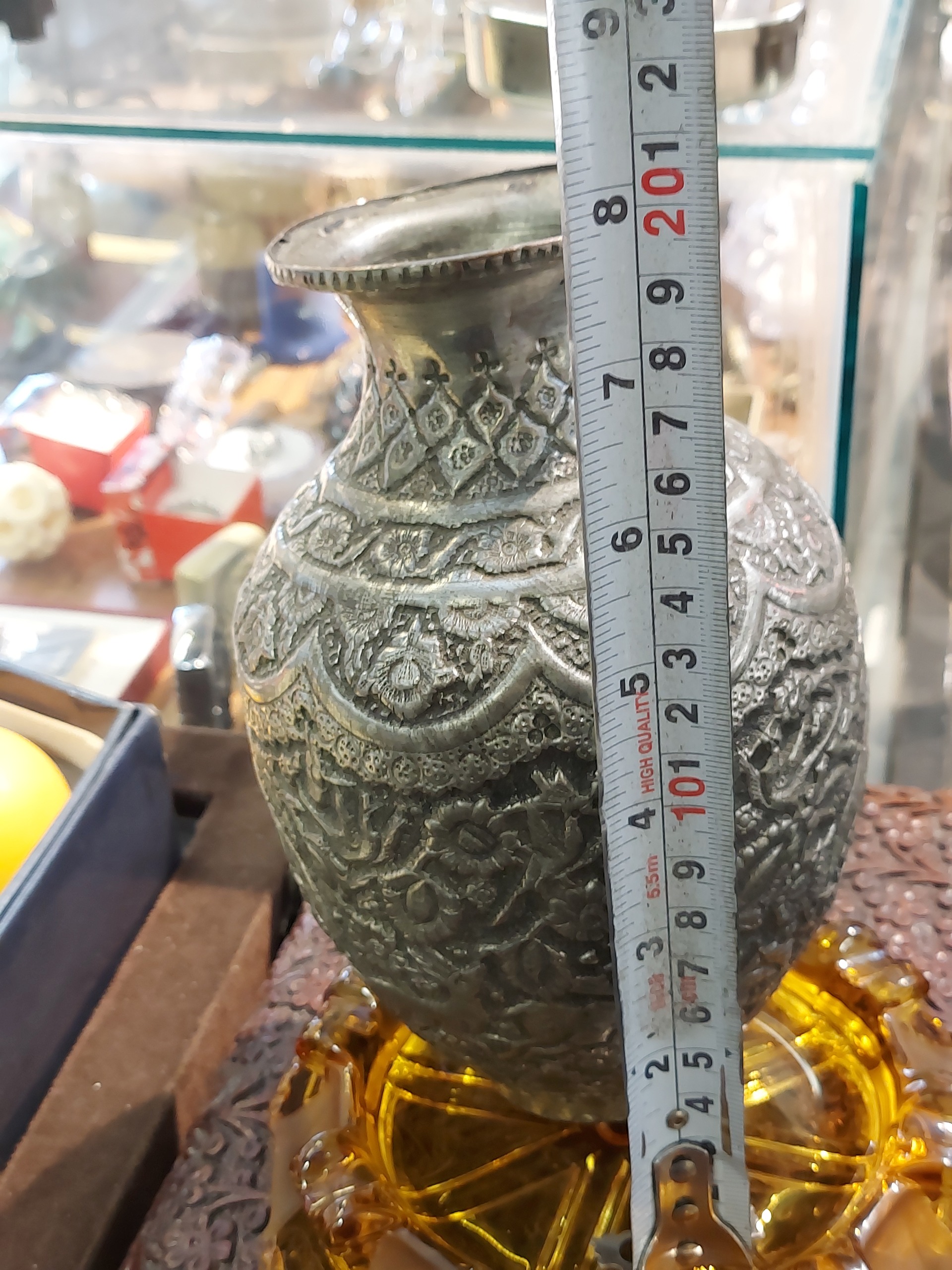 گلدان مسی تمام قلمزنی زیبا قدمت پهلوی سلامت