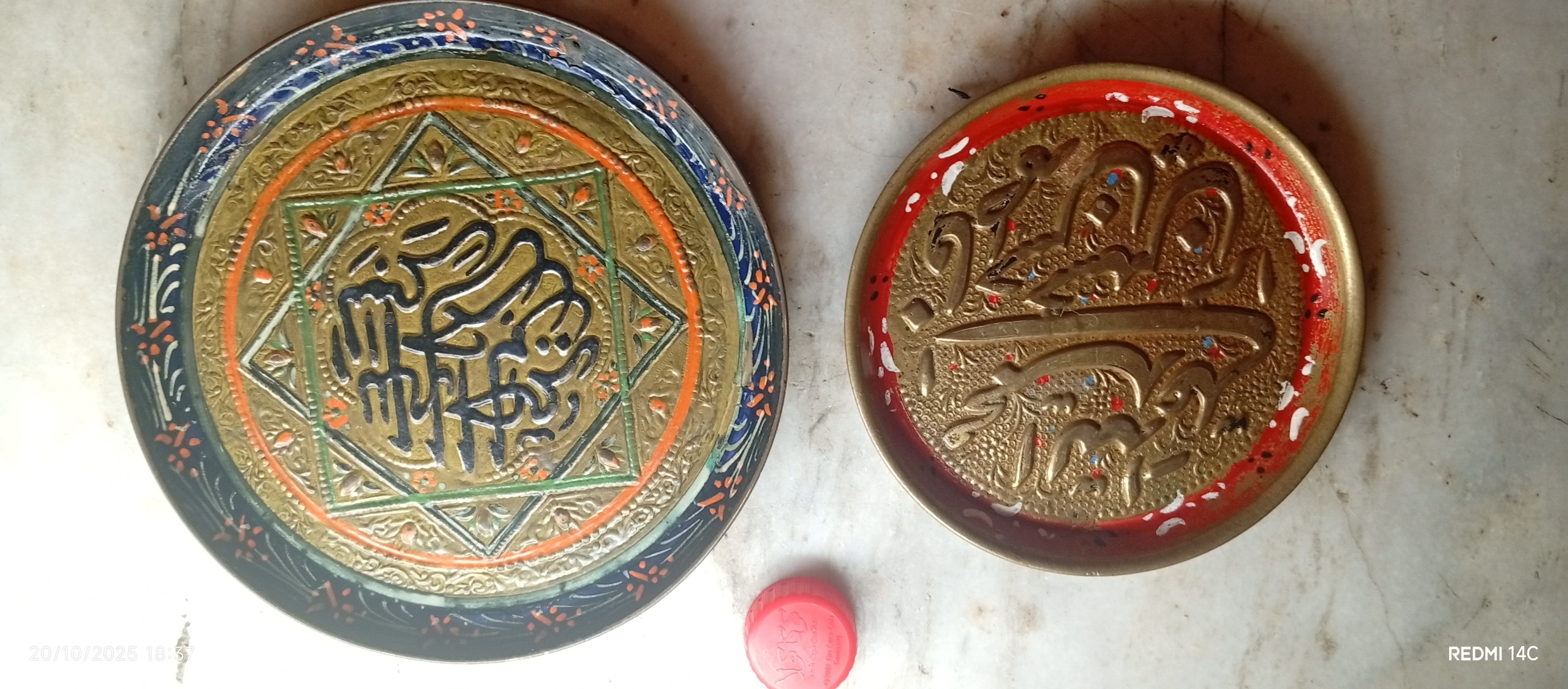 بشقاب برنجی قدیمی دو عدد هردو باهم دکری برنجی