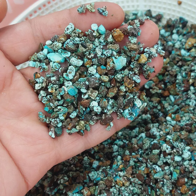 سنگ ریزه های فیروزه نیشابوری اصل سایز 1 و 2 قاطی هستش  دوستان قیمت درج شده برای هر 100 گرم از این سنگ زیبا هستش