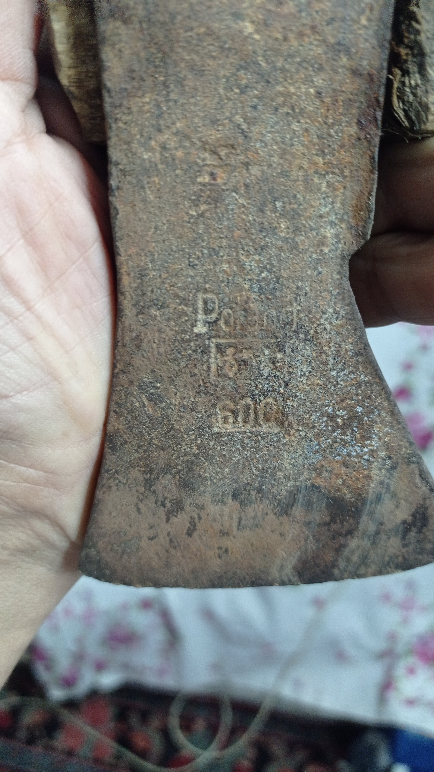 تبر قدیمی با دسته چوبی مهردار سالم بدون ایراد