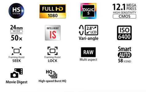 این مدل جدید از سیستم HS کانن بهره می برد. ترکیبی از سنسور 12.1 CMOS مگاپیکسلی فوق حساس با پردازنده ی عکسSX50 . DIGIC5 از سنسور جدید فوق حساس بهره می برد که دارای قدرت جذب نور بیشتری به نسبت مدل های قبلی می باشد. عکسبرداری با ISO بالاترین میزان 12800 اجازه استفاده از سرعت شاتر بالاتر و عکسبرداری پی در پی سریع تری را به کاربران خواهد داد. پردازنده ی Digic 5 نیز در این دوربین میزان نویز عکس را در پایین ترین میزان ممکن نگه خواهد داشت.