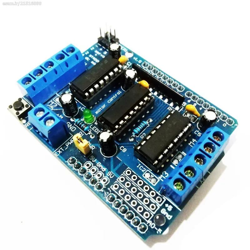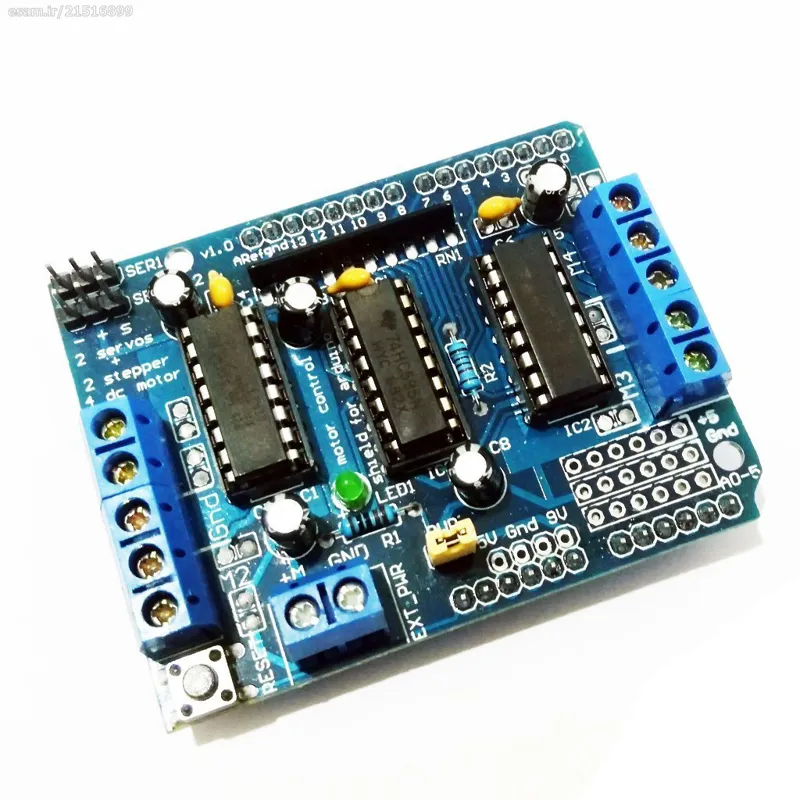 ساخته شده است و می تواند 4 موتور DC دو جهته، 2 موتور پله ای یا استپر و 2 موتور سروو را هدایت کند. عمدتا با بردهای Arduino UNO و MEGA سازگار است. توجه داشته باشید که هر کانال این ماژول حداکثر جریان 1.2A دارد و اگر ولتاژ بیش از 25 ولت یا کمتر از 4.5 ولت باشد،