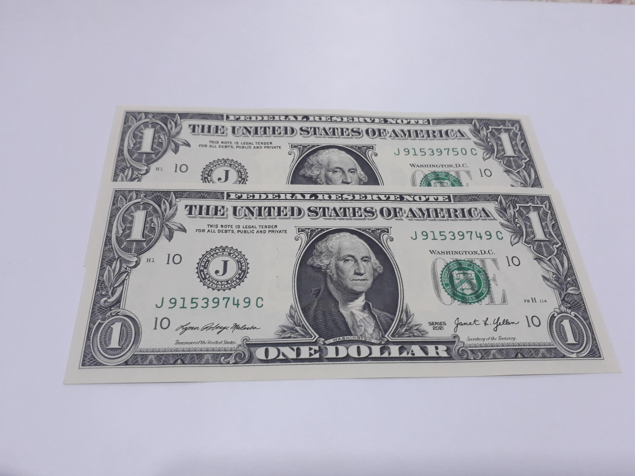 یک جفت شماره پشت سر هم دلار سال 2021 کشور آمریکا.