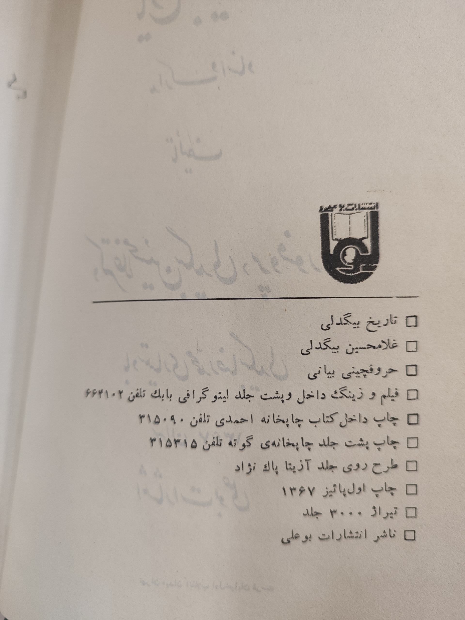 تاریخ بیگدلی_ دکتر غلامحسین بیگدلی _ چاپ اول