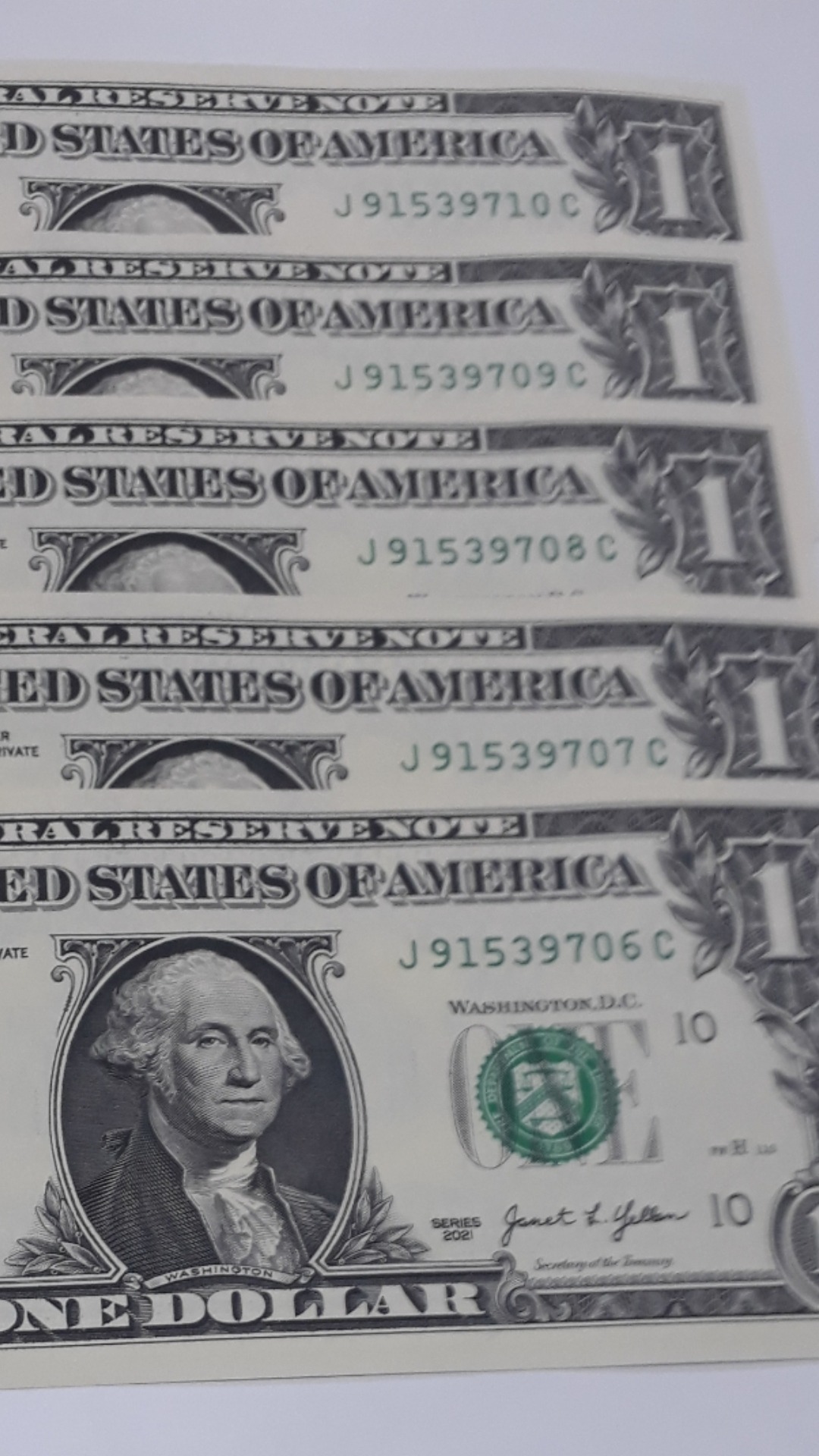 5 جفت اسکناس یک دلار سال 2021 آمریکا. تعداد بیشتر هم موجود است