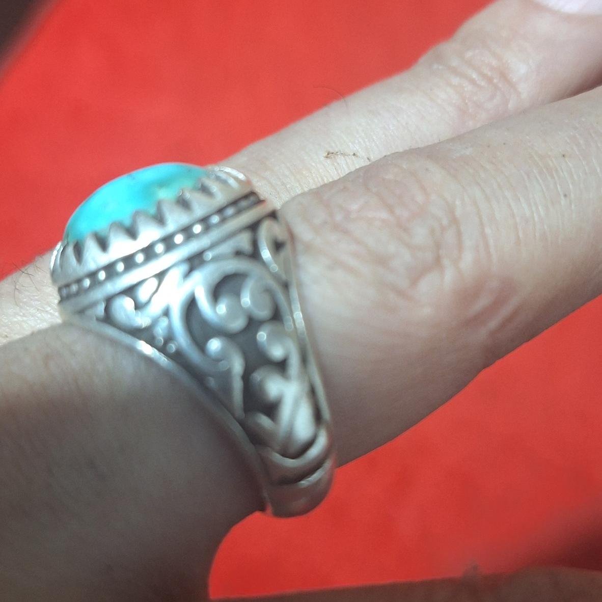 انگشتر نقره عیار925 سنگ فیروزه زیبا وزن 10گرم