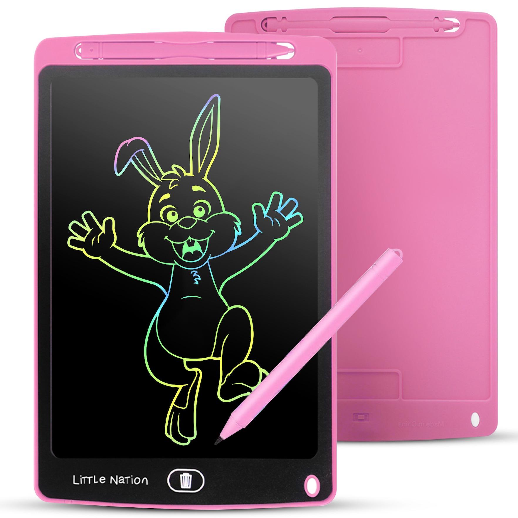تبلت نقاشی رنگی با سایز صفحه نمایش 10 اینچی یک اسباب بازی فوق العاده جذاب و سرگرم کننده برای نقاشی کردن کودکان است. این اسباب بازی دیجیتالی خیلی راحت جایگزین کاغذ و دفتر شده و بهترین وسیله برای نقاشی کردن کودکان است. این تبلت قابلیت استفاده به عنوان کاغذ یادداشت، طراحی و جزوه نویسی برای دانش آموزان و دانشجویان را نیز دارد. تبلت بچه گانه یک صفحه نمایش 10 اینچی از نوع LCD دارد که صفحه نمایش مات برای جلوگیری از آزار دیدن چشم دارد. برای استفاده کردن از تبلت نقاشی کودکان فقط کافی است که قلم را بر روی صفحه تبلت بکشید تا نقاشی ها و نوشته ها بر روی صفحه نمایش ظاهر شوند. در قسمت بالای این تبلت یک جای قلم وجود دارد تا همیشه قلم و تبلت در کنار هم باشند و به آسانی بتوانید از آن استفاده کنید. در بخش زیرین تبلت بچه گانه یک دکمه DELETE یا پاک کردن وجود دارد که با فشار دادن آن، نوشته ها و نقاشی های روی صفحه نمایش پاک شده و می توانید دوباره از آن همانند یک برگه خالی استفاده کرده و شروع به نقاشی کردن، ترسیم کردن یا نوشتن کنید. باتری تبلت از نوع سکه ای بوده و به راحتی قابل تعویض کردن است. اگر در زمان نقاشی کردن یا طراحی کردن می خواهید نقاشی یا طرح شما با برخورد اشتباهی دست به دکمه زیر تبلت پاک نشود، می توانید از دکمه قفل پشت تبلت بچه گانه استفاده کنید. با استفاده از دکمه قفل پشت تبلت بچه گانه، از پاک شدن ناخواسته طرح یا نقاشی خود جلوگیری کنید.