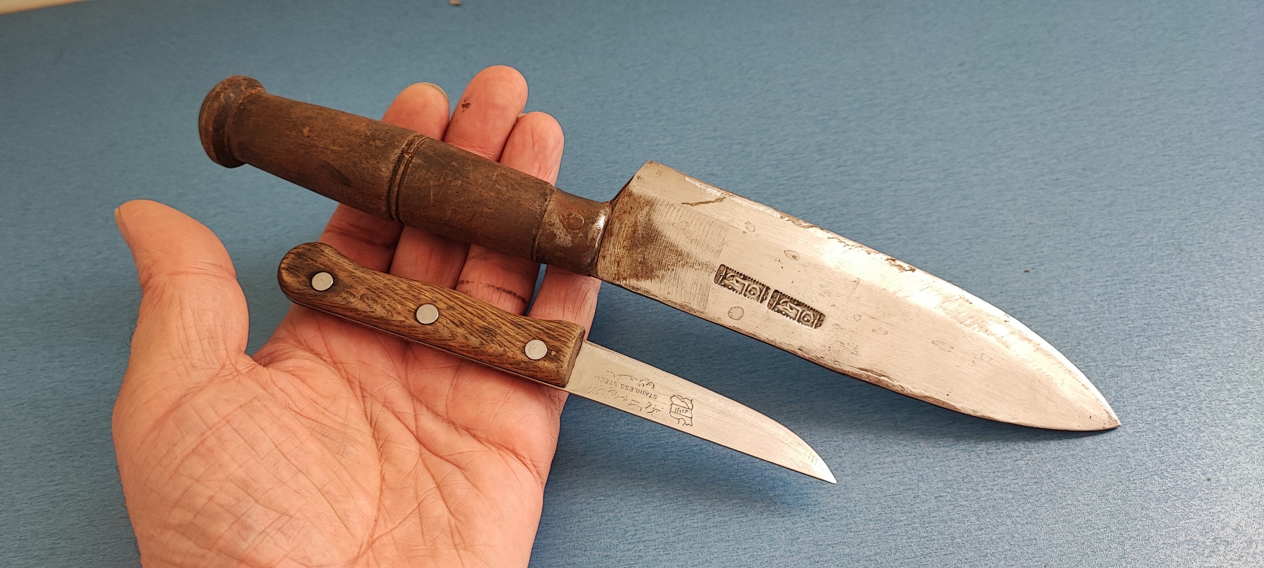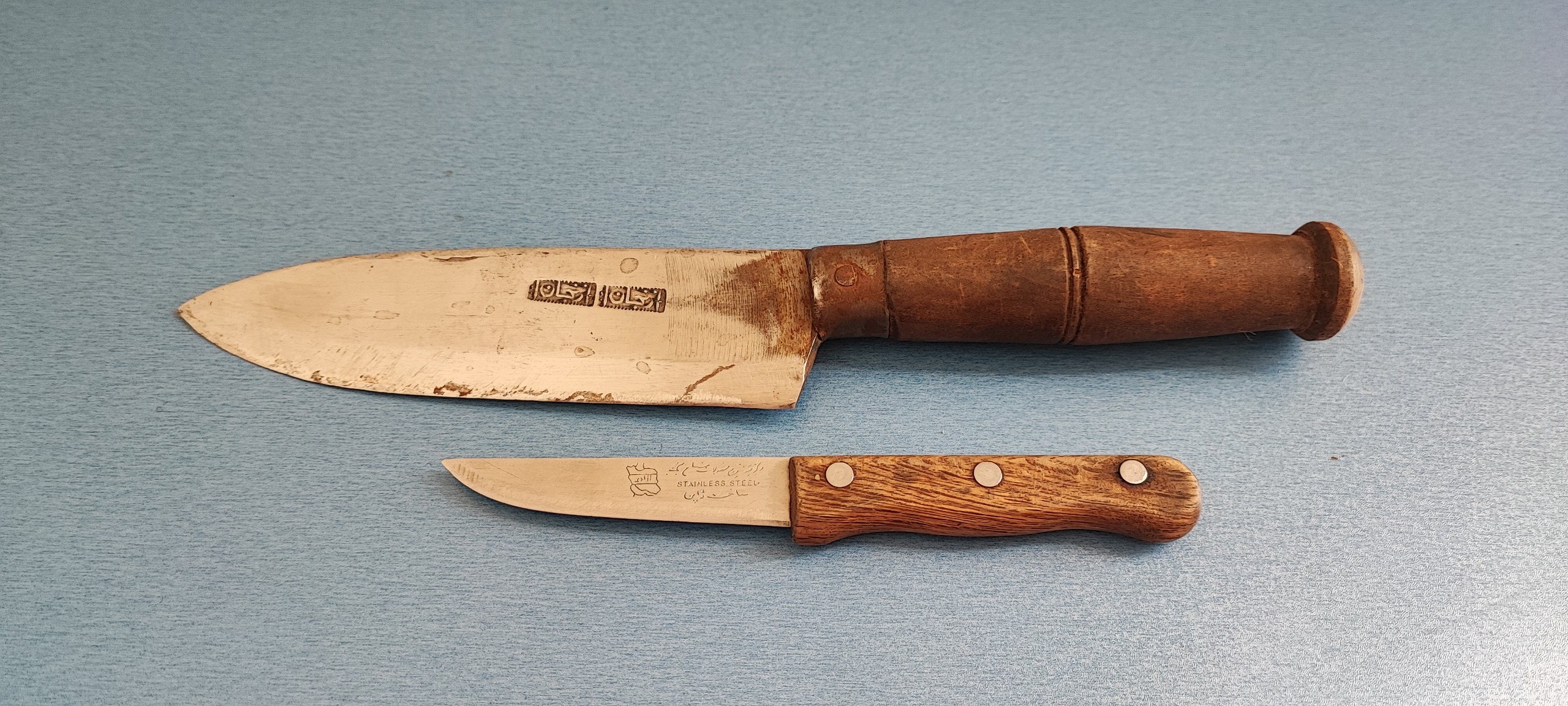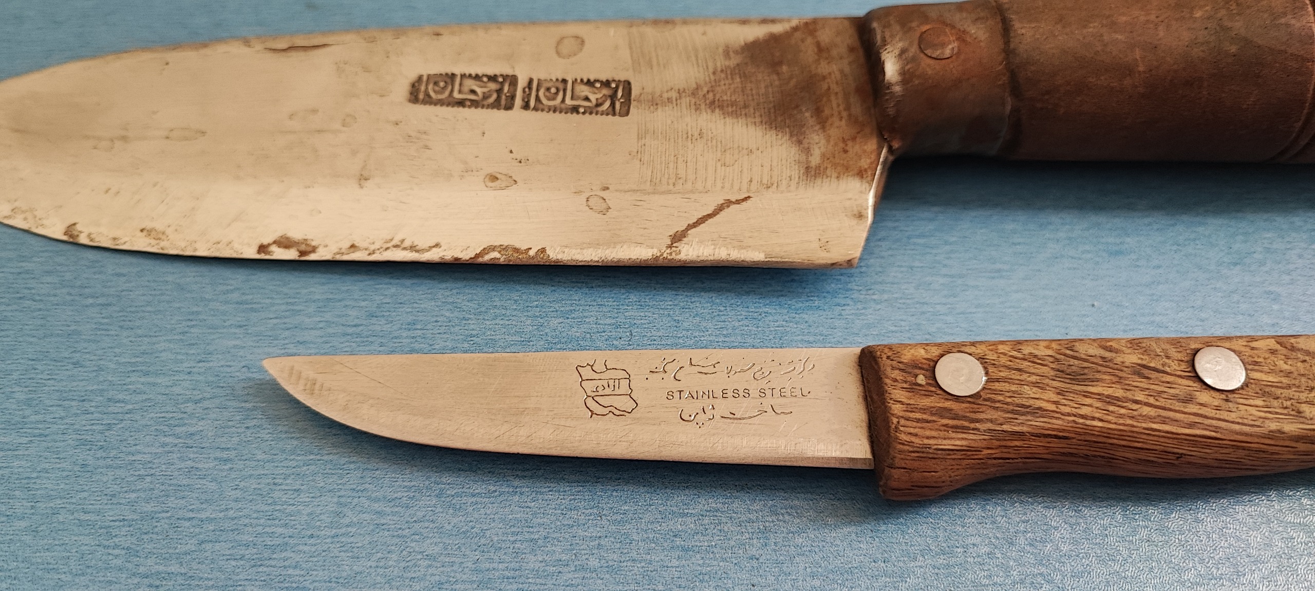 دو عدد چاقوی آشپزخانه ساخت زنجان و ژاپن قدیمی
