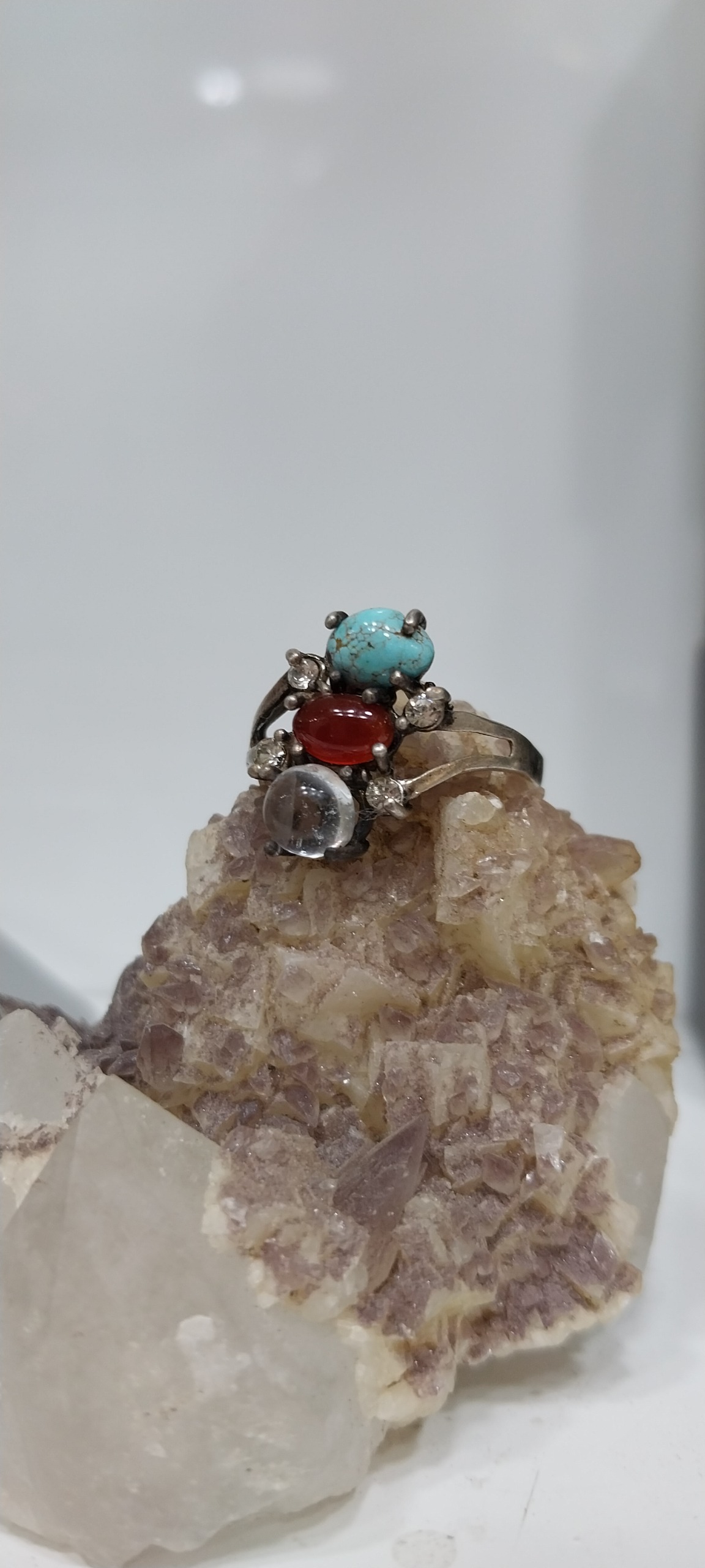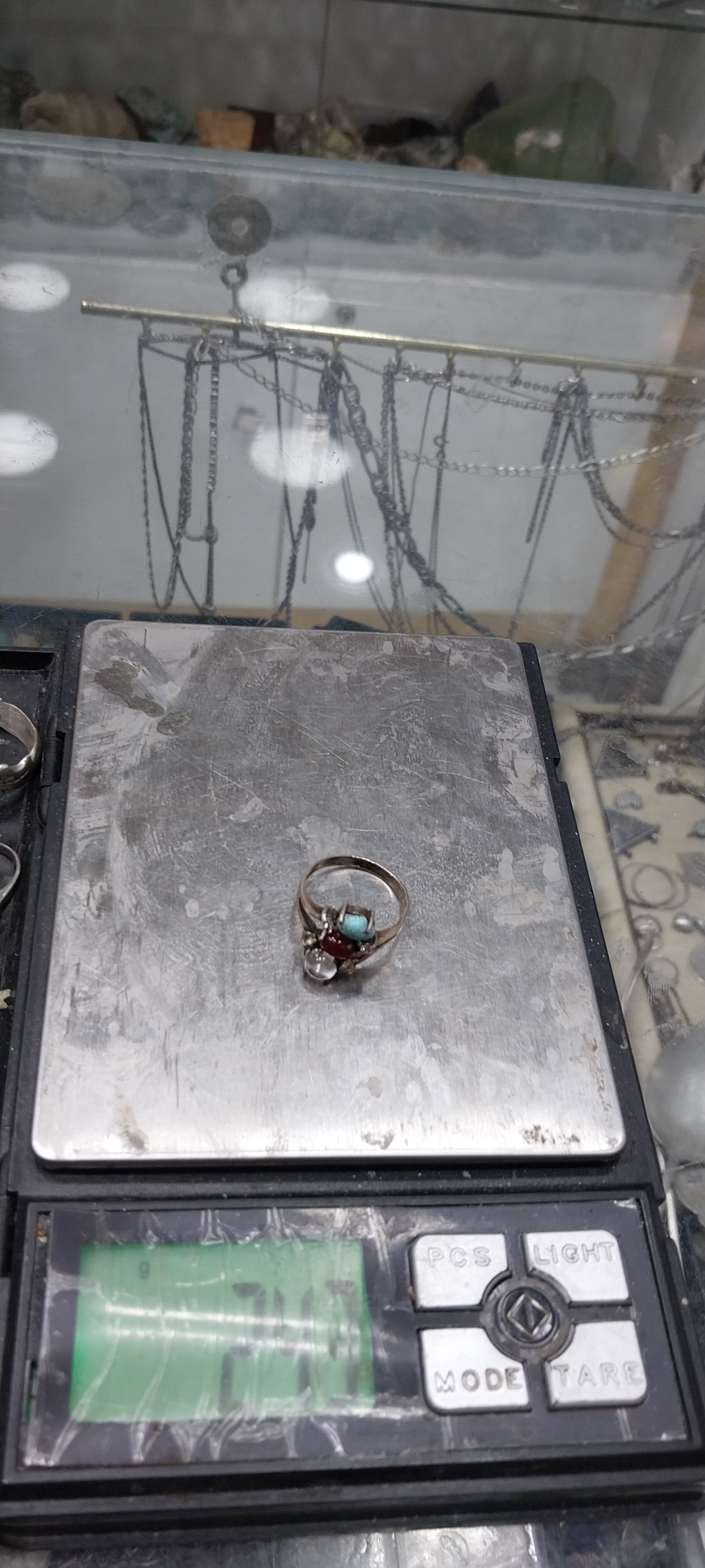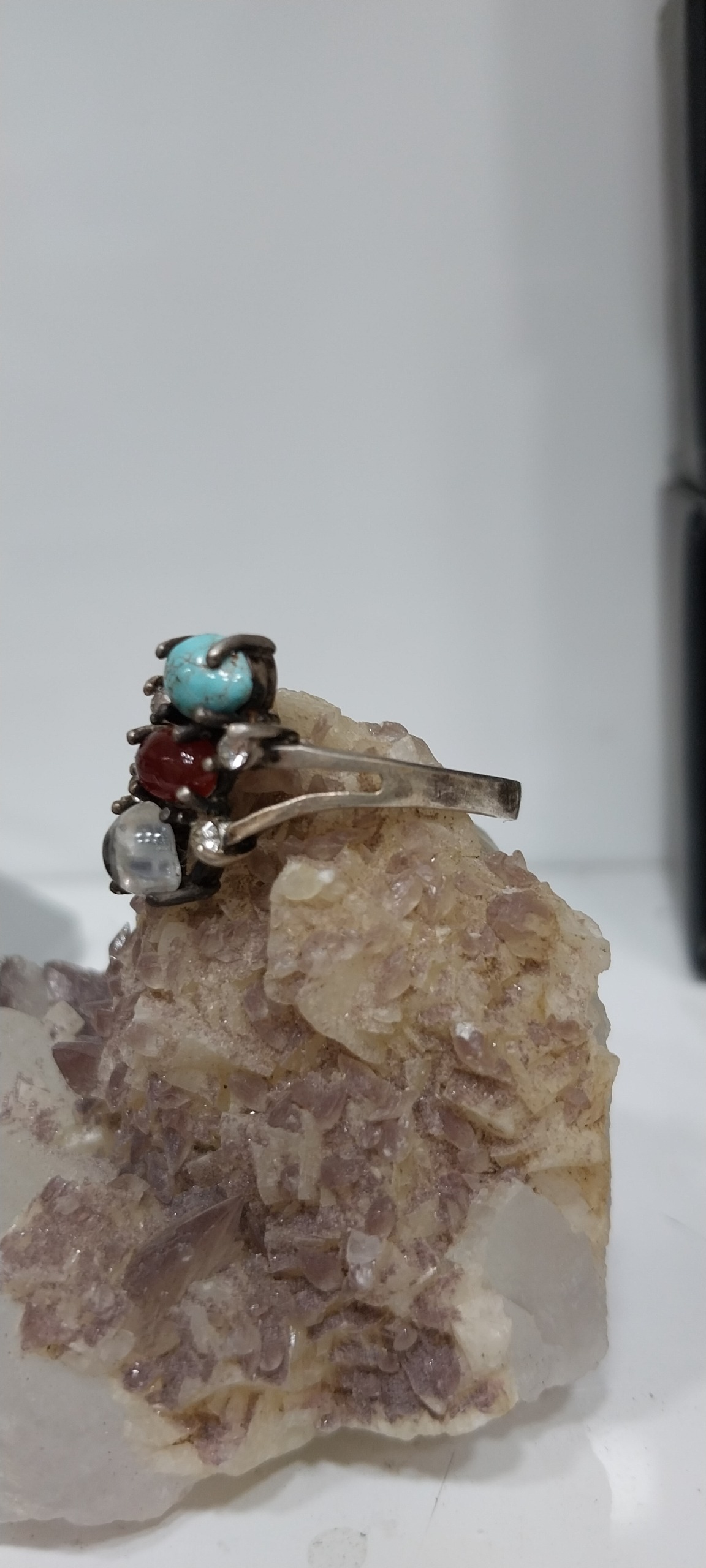 انگشتر نقره 3 نگین طبیعی عقیق فیروزه در