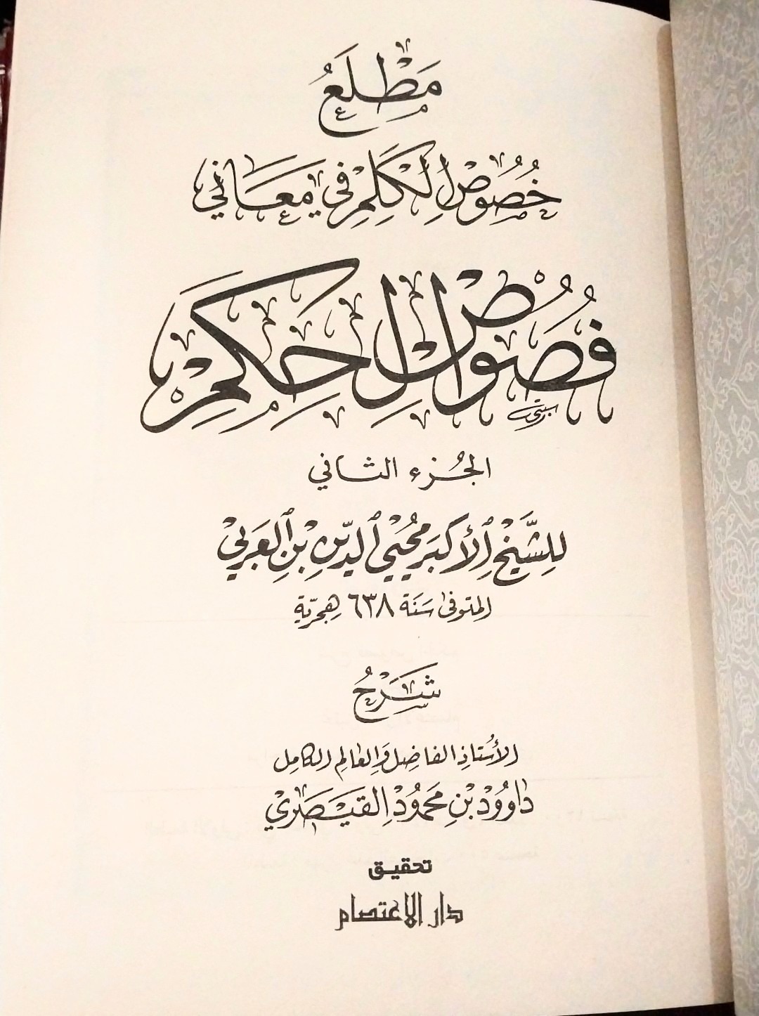 شرح فصوص الحکم ، مطلع خصوص الکلم فی معانی فصوص