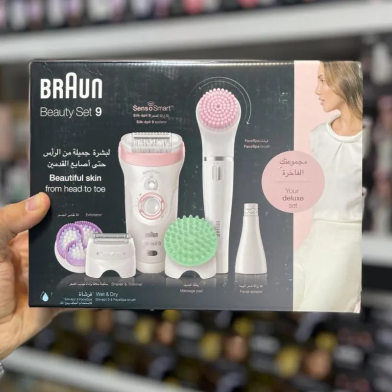 بهترین مجموعه براون برای داشتن پوستی صاف در تمام قسمت های بدن. برای استفاده صورت، پاها و نواحی حساس. برای دستیابی به پوستی بی عیب از رژیم براون پیروی کنید: لایه برداری، اپیلاسیون، شیو کردن و پاکسازی. سِت زیبایی اپیلاتور سری 9 براون مدل SES 9-985 با 11 وسیله اضافی است. ایده آل ترین مجموعه زیبایی پوست، این مدل اپیلیدی سری 9 براون می باشد.