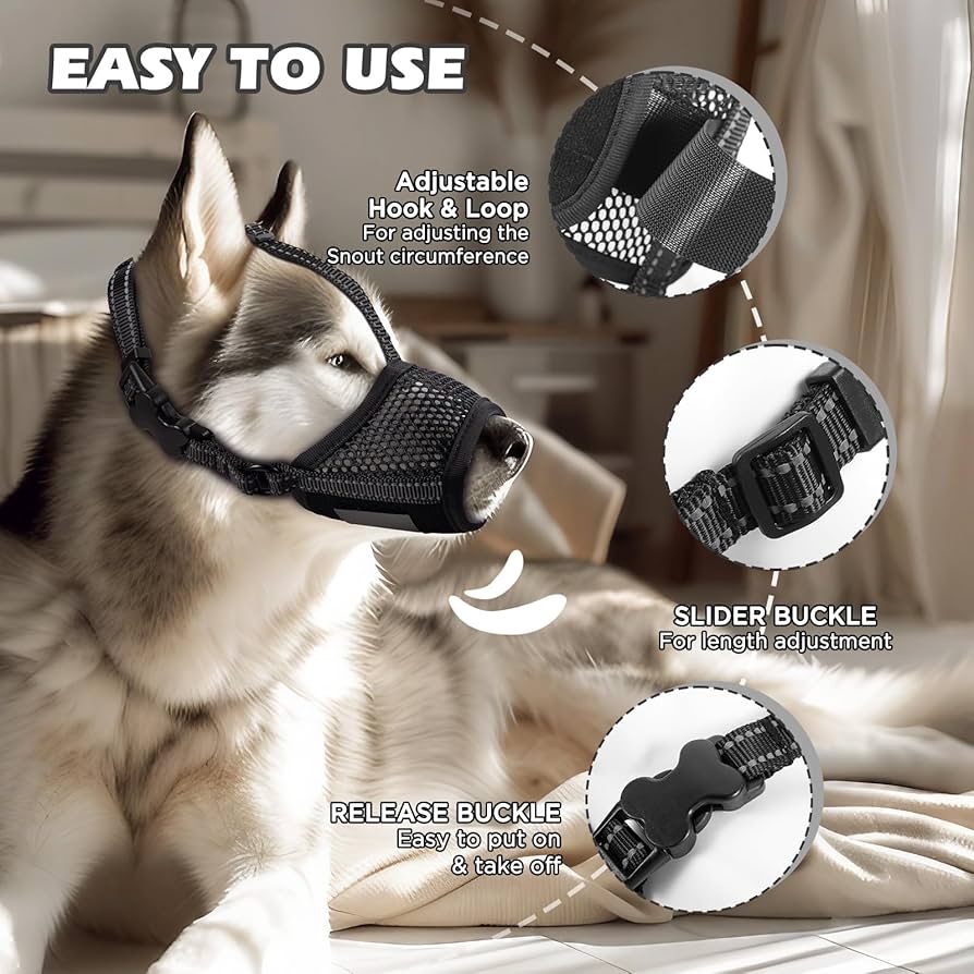 پوزهبند سگ توری ارتقا یافته که از مواد نرم، سبک و بیبو ساخته شده است، برای سگها بسیار راحت است. یک بند همچنین حداکثر تهویه را برای سگها فراهم میکند و به آنها اجازه میدهد آزادانه نفس نفس بزنند.