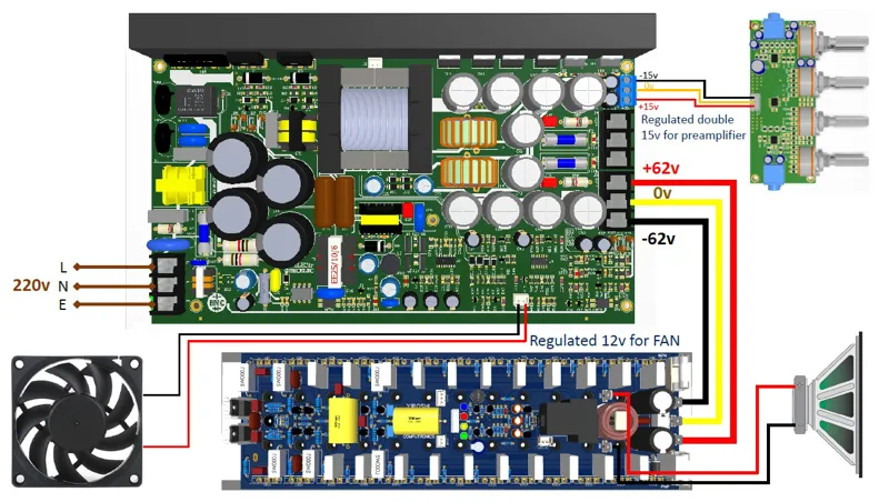 این منبع تغذیه سوویچینگ مخصوص آمپلی فایرهای صوتی کلاس AB و D طراحی شده است و میتواند به صورت مداوم 1000 وات توان تحویل بار دهد.