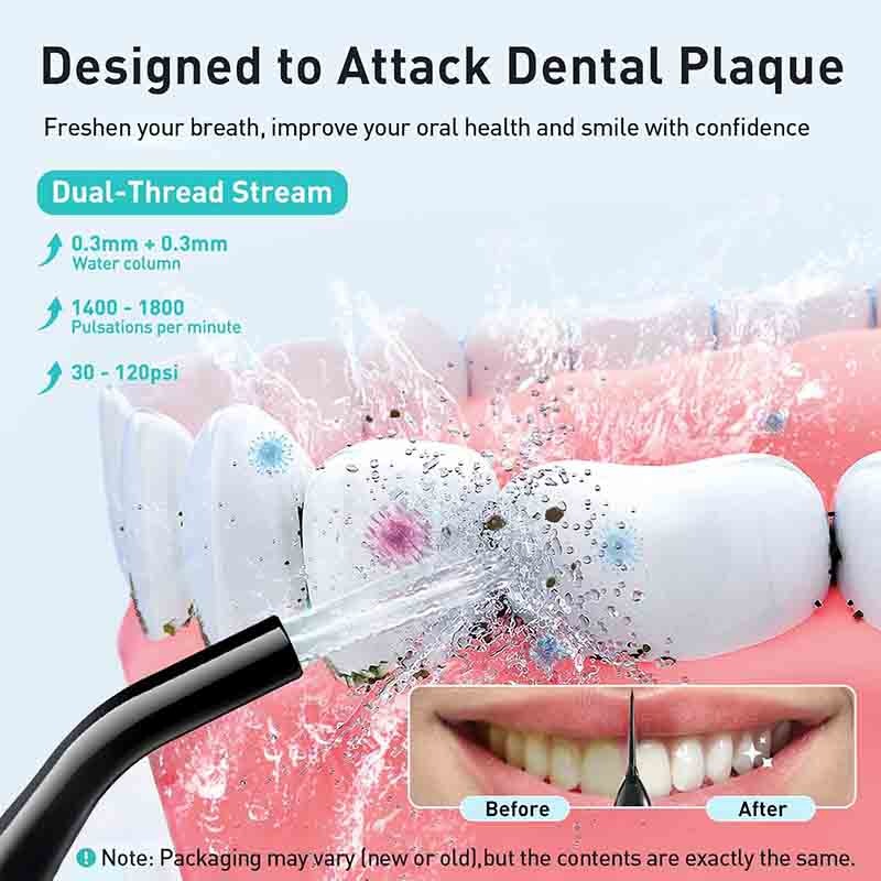 ضد آب با استاندارد IPX7 و دوام 3 ساله: نوک دندانی بیسیم ما از ویژگیهای ضد آب بالاتر است و میتوان آن را آسان کرد و از ایمن در هنگام دوش گرفتن را میکند. موتور ارتقاء یافته آن جریان آب دوگانه منحصربهفرد را ارائه میدهد و به گونهای ساخته میشود که در صورت استفاده معمولی 3 سال دوام بیاورد.