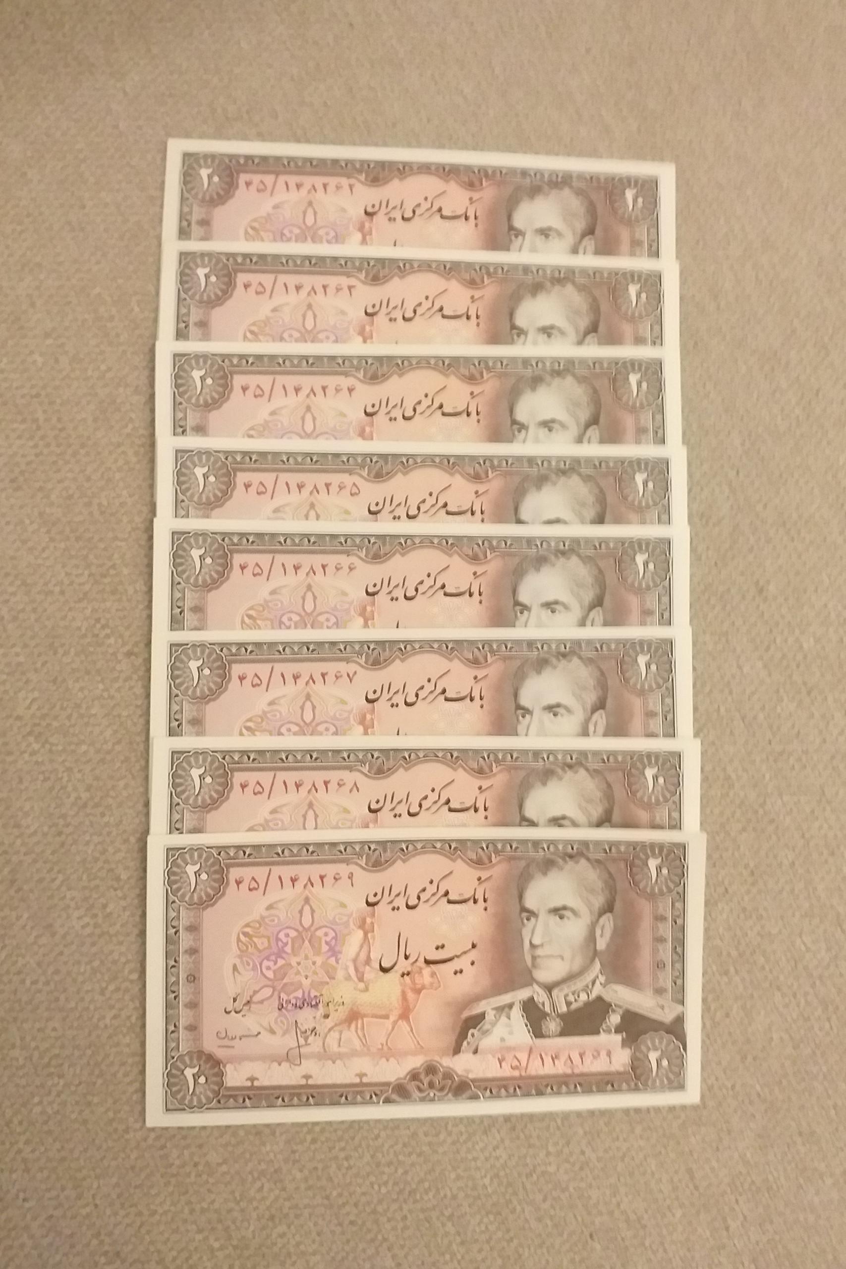 اسکناس 20 ریالی پهلوی 4جفت ، نو و بانکی (کد588)