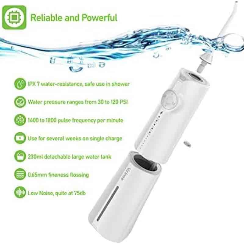 ضد آب/کم صدا/ماندگاری طولانی این نخ دندان بیسیم با طراحی مقاوم در برابر آب IPX 7 برای استفاده ایمن و راحت در حمام یا دوش طراحی شده است. صدا در 75 دسیبل است و هنگام استفاده در صبح یا فردا شب، هیچ مزاحمتی برای دیگران ایجاد نمیکند. باتری واجد شرایط آن با