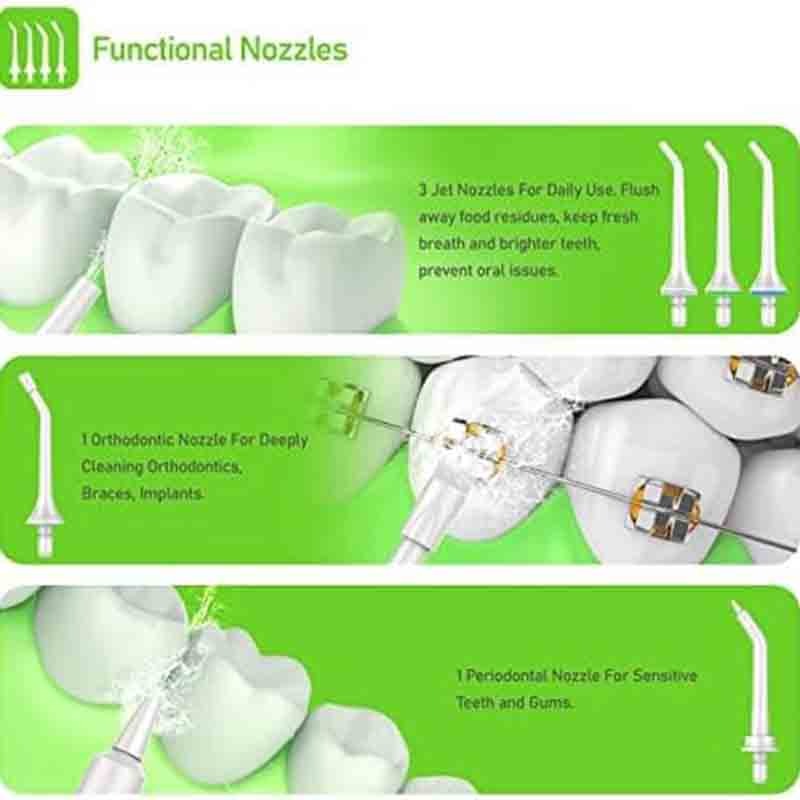 تمیز کردن 1 دقیقه در روزتمیز کردن منطقه ای بین دندان ها و زیر خط لثه که مسواک معمولی به آن دسترسی ندارد، آسان و مطمئن است. باقیمانده غذا و خردههای غذا را با فشار قوی آب و ضربات آب بشویید. از مشکلات دهان و دندان جلوگیری میکند، نفس تازهای به شما میدهد،