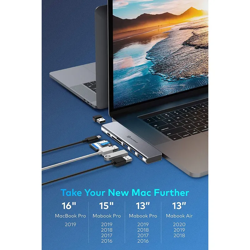 7 در 2 هاب چند منظوره : این آداپتور با قدرت لپ تاپ مک شما را با 3 درگاه USB 3.0 ، تاندربولت 1 درگاه USB C و 2 کارت خوان SD/TF و 1 درگاه USB 2.0 افزایش می دهد . تمام نیازهای خود را در یک مرکز باریک بیاورید .