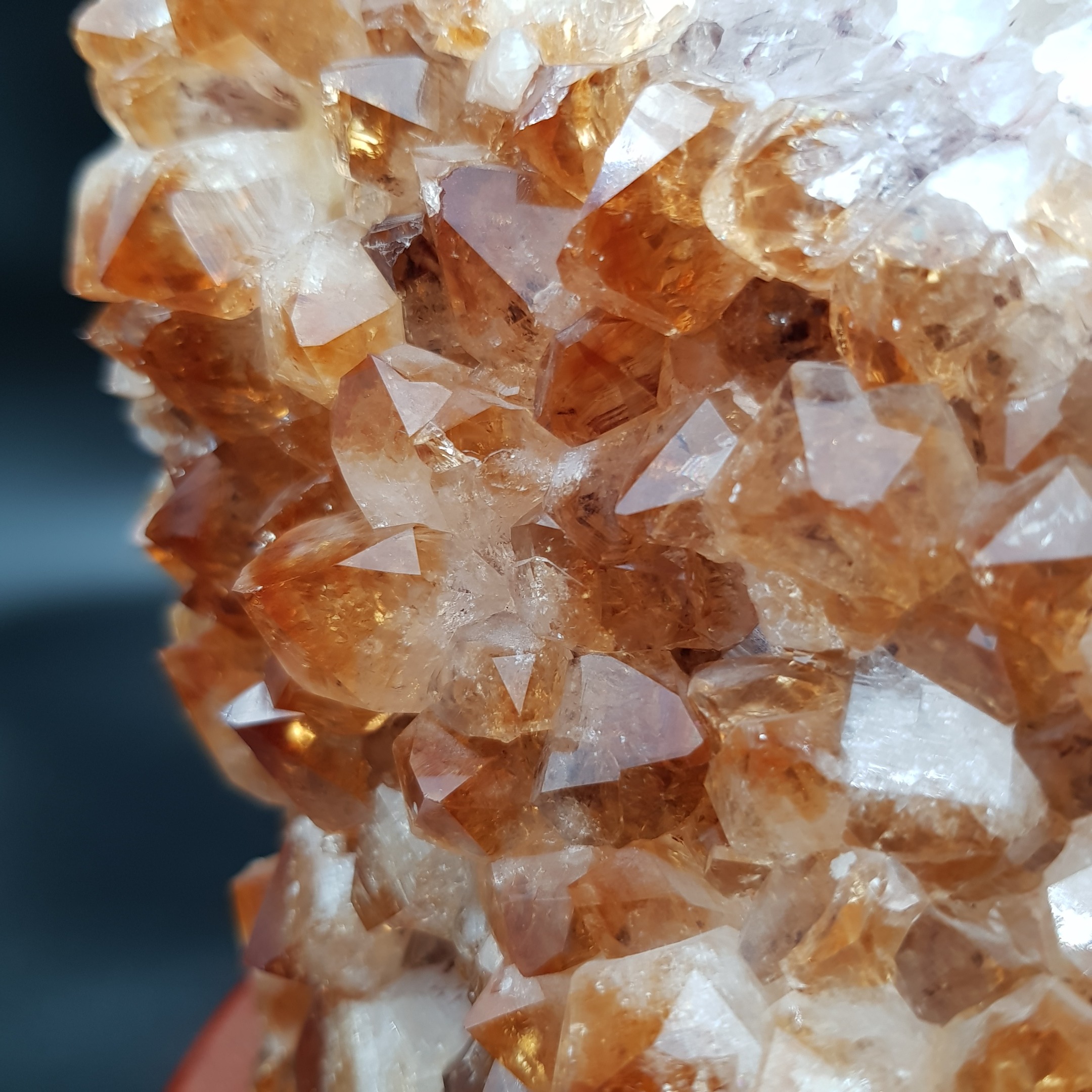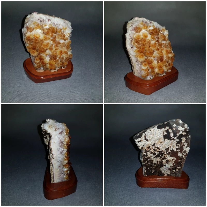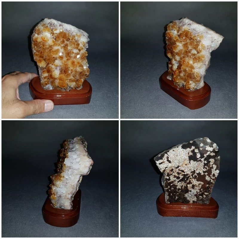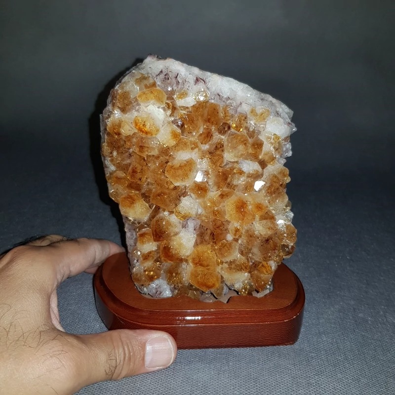 گوهر سنگ سیترین درشت بلور عسلی روی پایه چوبی نفیس