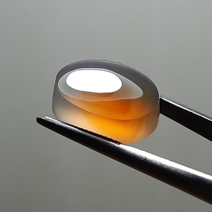 عقیق دخانی ( دودی ) رگه زعفرانی خوشرنگ آبدار اصل یمن با رنگ طبیعی بدون بهسازی ، اصلاح تراش شده دقیق ، ارتفاع دار و گوشتی