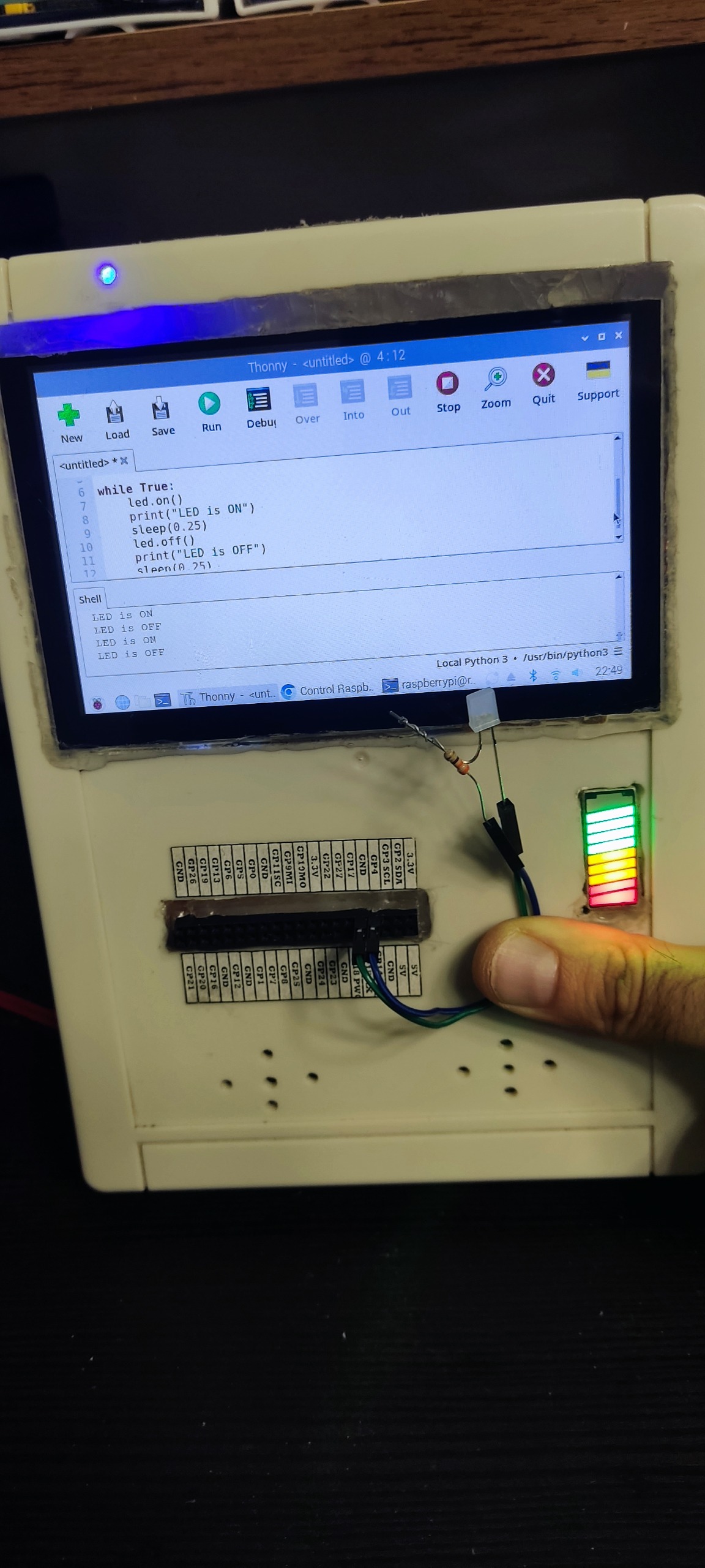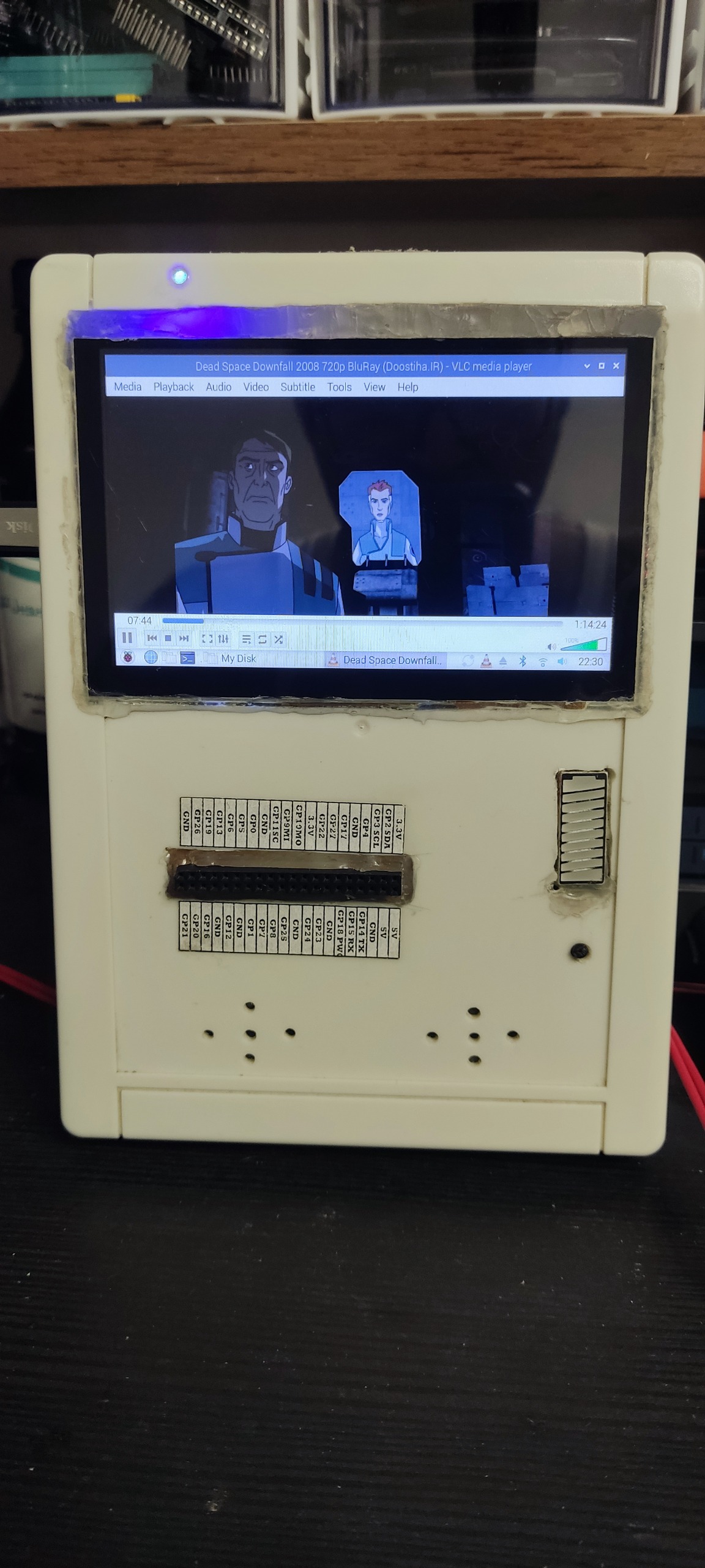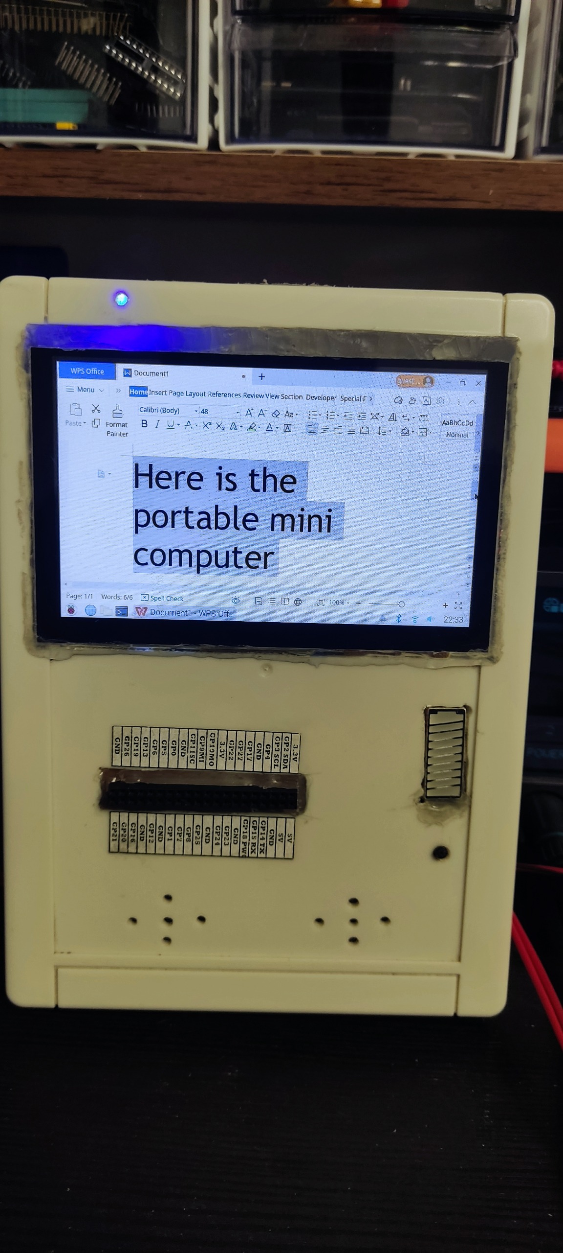این مینی کامپیوتر قابل حمل رو خودم درست کردم.قصدم از ساختنش این بود که برای مواقعی که میخوام برنامه نویسی کنم، به هیچ منبع یا هیچ قطعه ی جانبی ای برای راه اندازی سخت افزاری که واسش برنامه رو نوشتم، نیازی نداشته باشم و این دستگاه به خوبی از پس این مورد بر اومد. با توجه به 40 پین قابل برنامه ریزی و پاور که از خود دستگاه تامین میشه، شما فقط نیاز دارید که یک بردبرد به همراه جامپرها و قطعاتتون رو داشته باشید. علاوه بر اون، تمام قابلیت های یه کامپیوتر قابل حمل رو داره. از بازی گرفته تا وب گردی. مشخصات سخت افزاری در زیر نوشته شده: