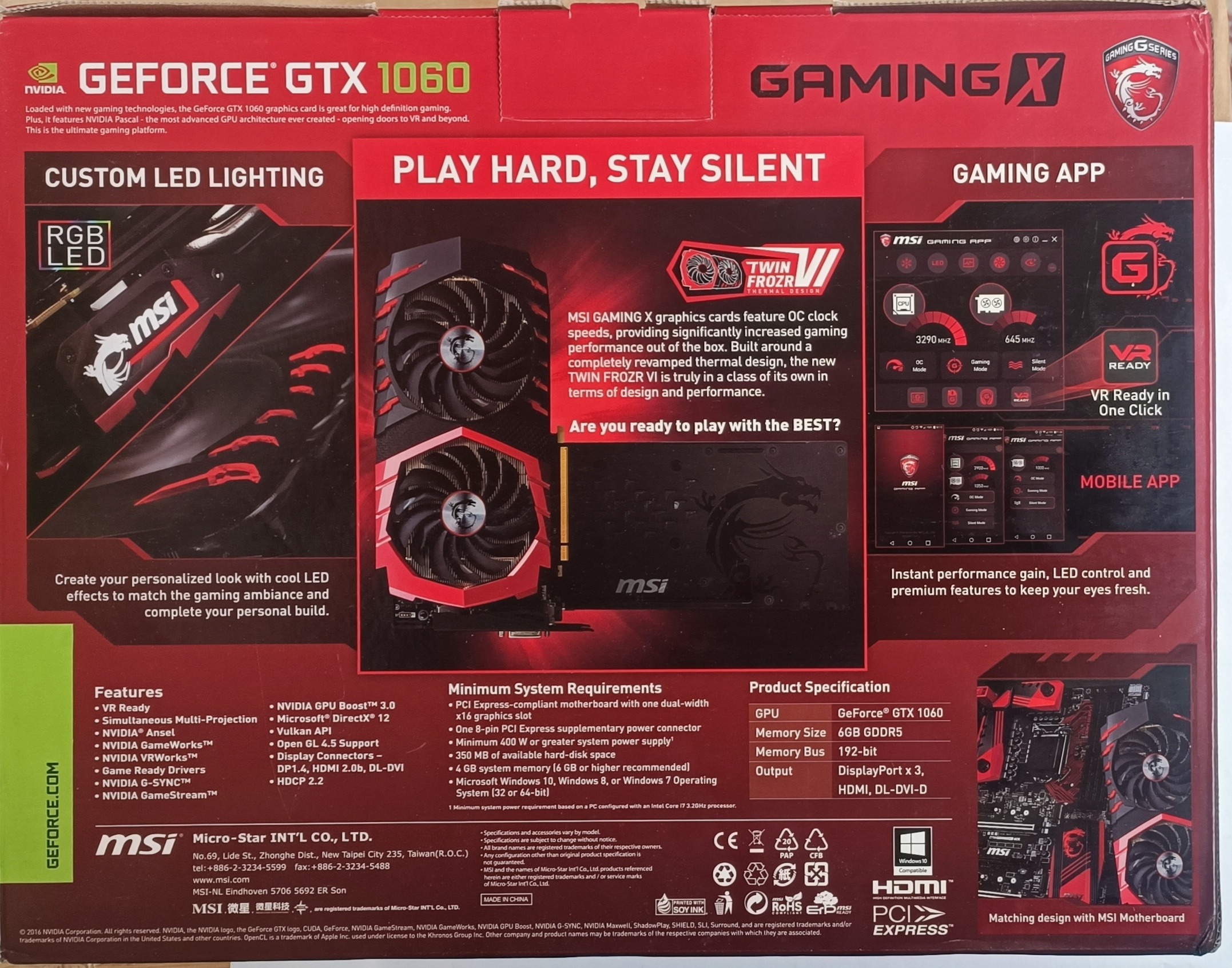 کارت گرافیک 6گیگ GTX 1060 برند MSI گیمینگ