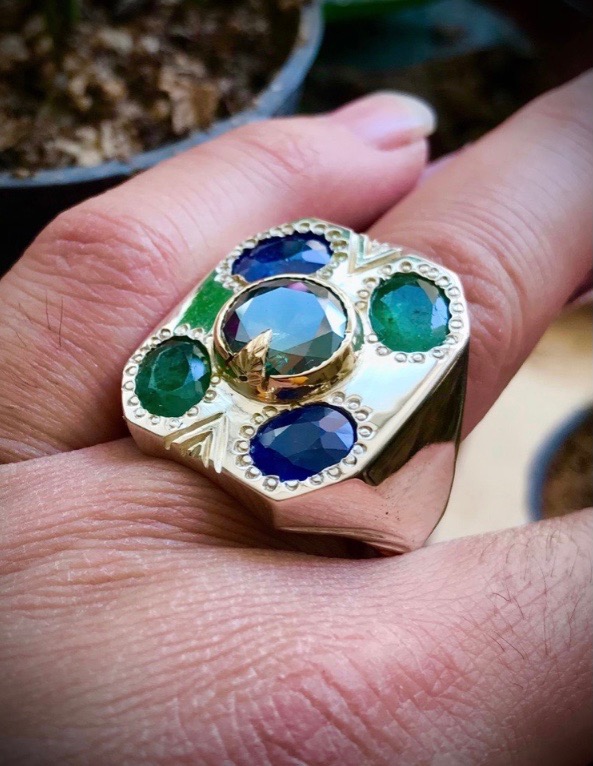 انگشتر پنج جواهری دست ساز