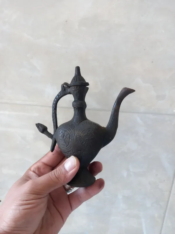 آفتابه تمام برنج باطراحی زیبا وقلمکاری شده انتیک اندازه حدود15سانت دکوری وهدیه ماندگار