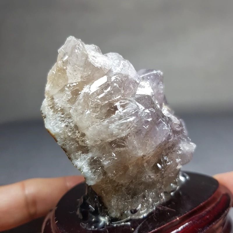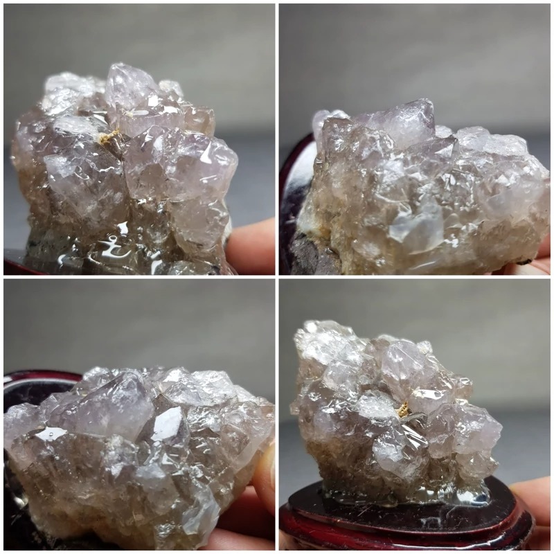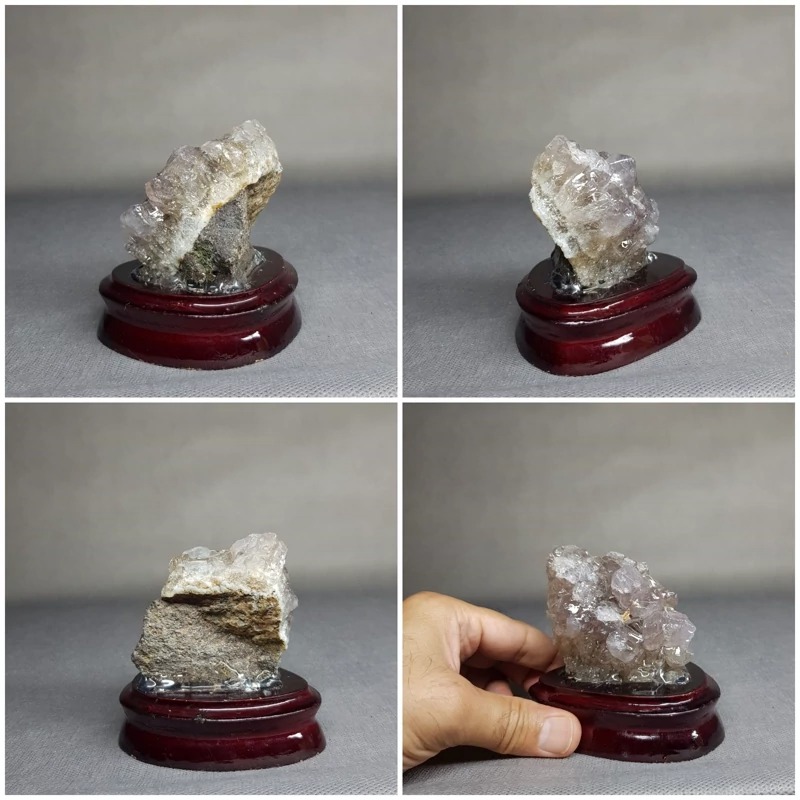 گوهر سنگ کریستال آمیتسیت ایران نصب شده روی پایه چوبی نفیس با بلورهای درخشان