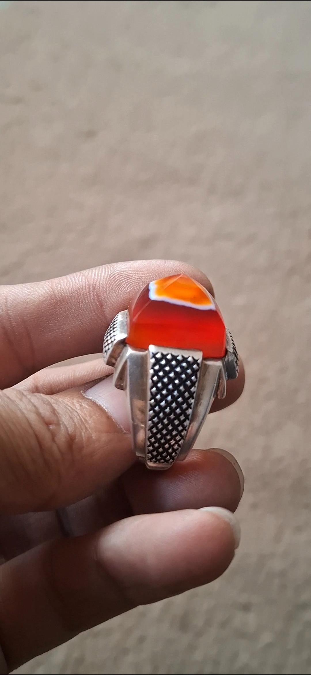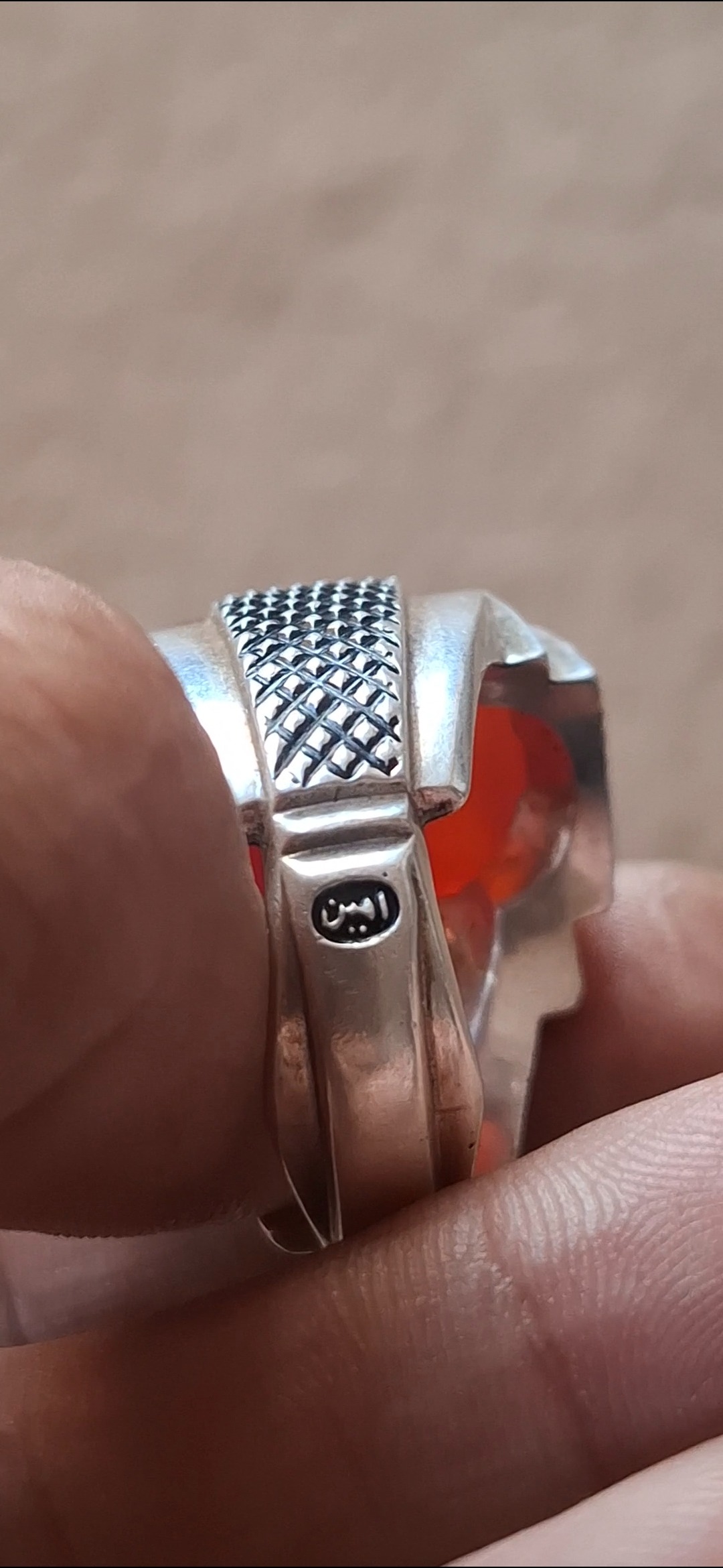 انگشتر نقره مردانه بانگین عقیق سرخ سپوست خوشرنگ زیبا وکلکسیونی