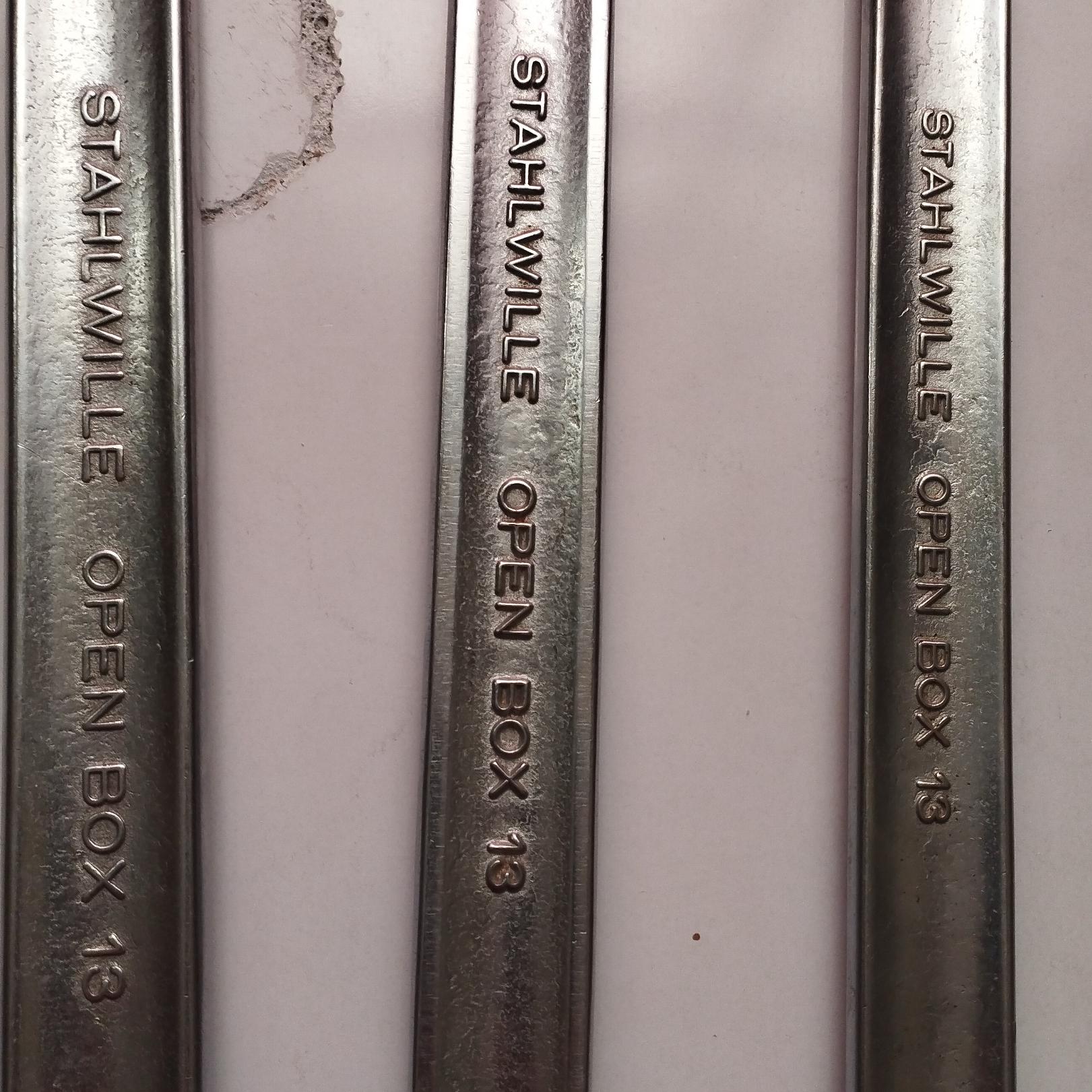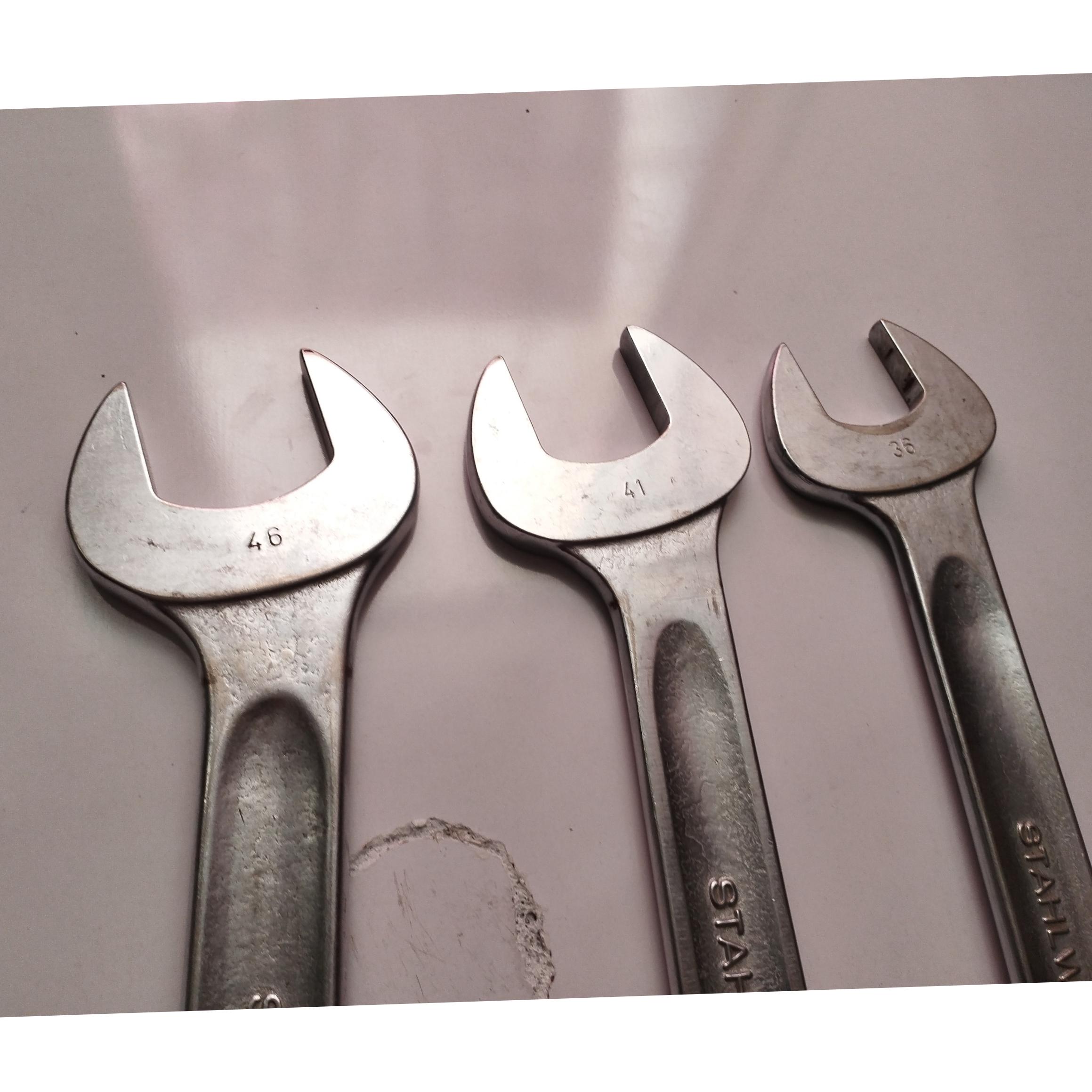 اشتایویل سری open box سایز46/41/36مطابق تصاویر گذاشته شده لطفاً تصاویر گذاشته شده را ملاک خرید خود قرار دهید و اگر عکس های بیشتری خواستین بفرمایید تا بفرستم خدمتتون.اچار ها در حد نو هستن.قیمت برای سه آچار میباشد